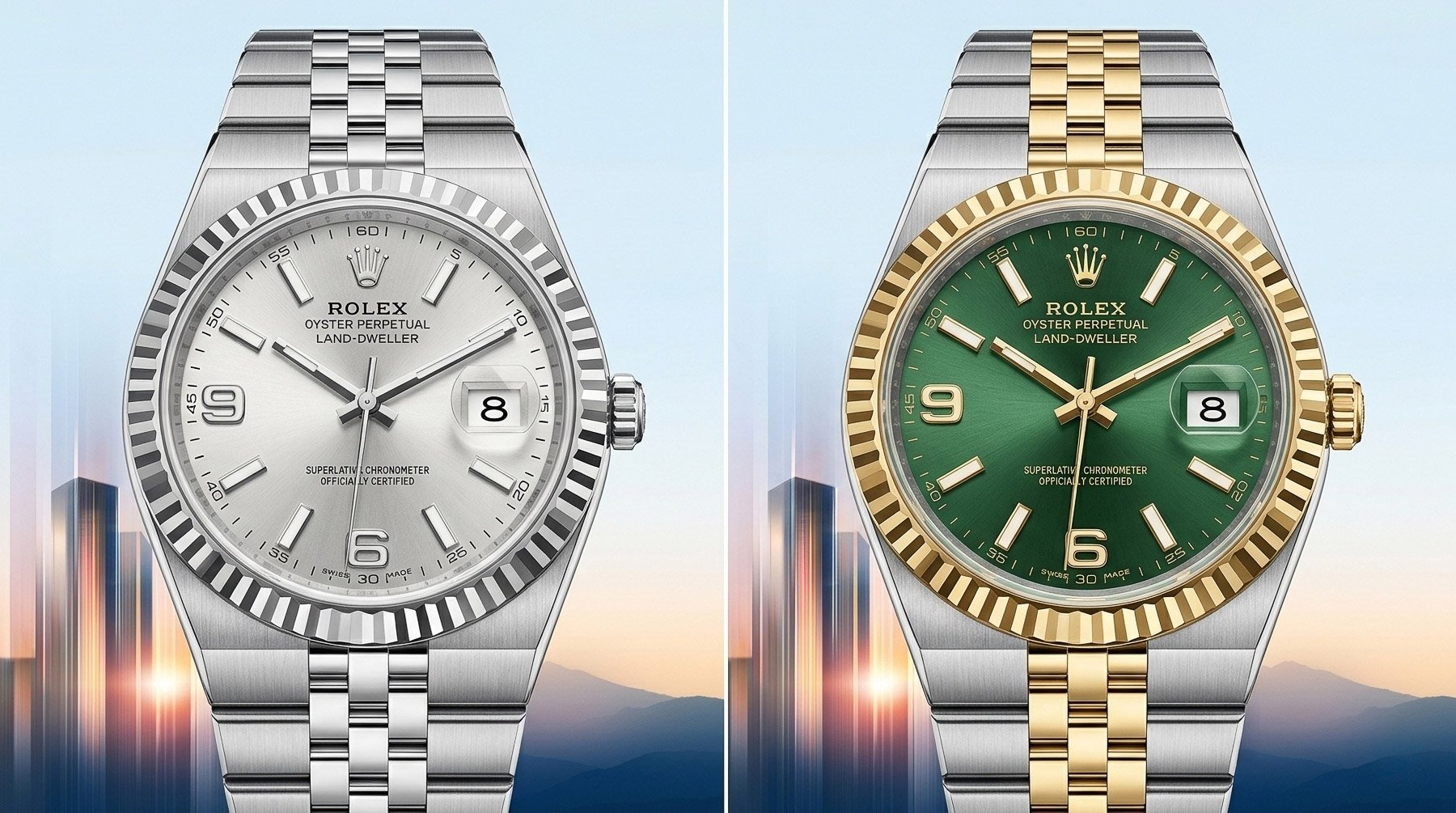 Okay, on to the most likely of them all, new dials for the Land-Dweller. Rolex surprised the watch world with a brand-new line last year. Featuring a new natural-escapement caliber and an integrated bracelet harking back to the days of the Oysterquartz, the Land-Dweller made some waves.