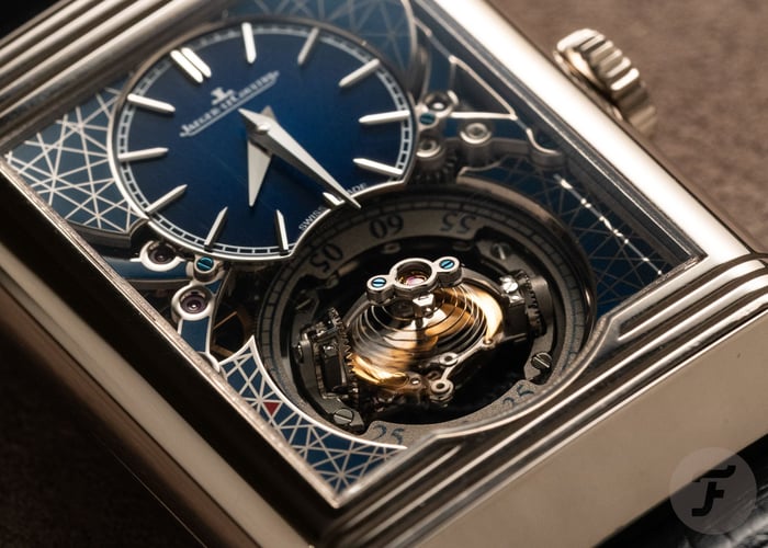The Reverso Hybris Artistica Calibre 179 is a watch that you won’t easily forget. As Thomas explained in his introduction article, once the word “Hybris” pops up, you know you are in for an impressive ride. The concept of this extraordinary watch is built around the basic Reverso Duoface. This means you get a watch with a time zone on each dial, and the rear dial also has a 24-hour indicator. However, that is not the central story of the watch, as that is the gyro tourbillon located at 6 o’clock. While technically not a “complication” in a horological sense, this tourbillon is most certainly a complex mechanism.