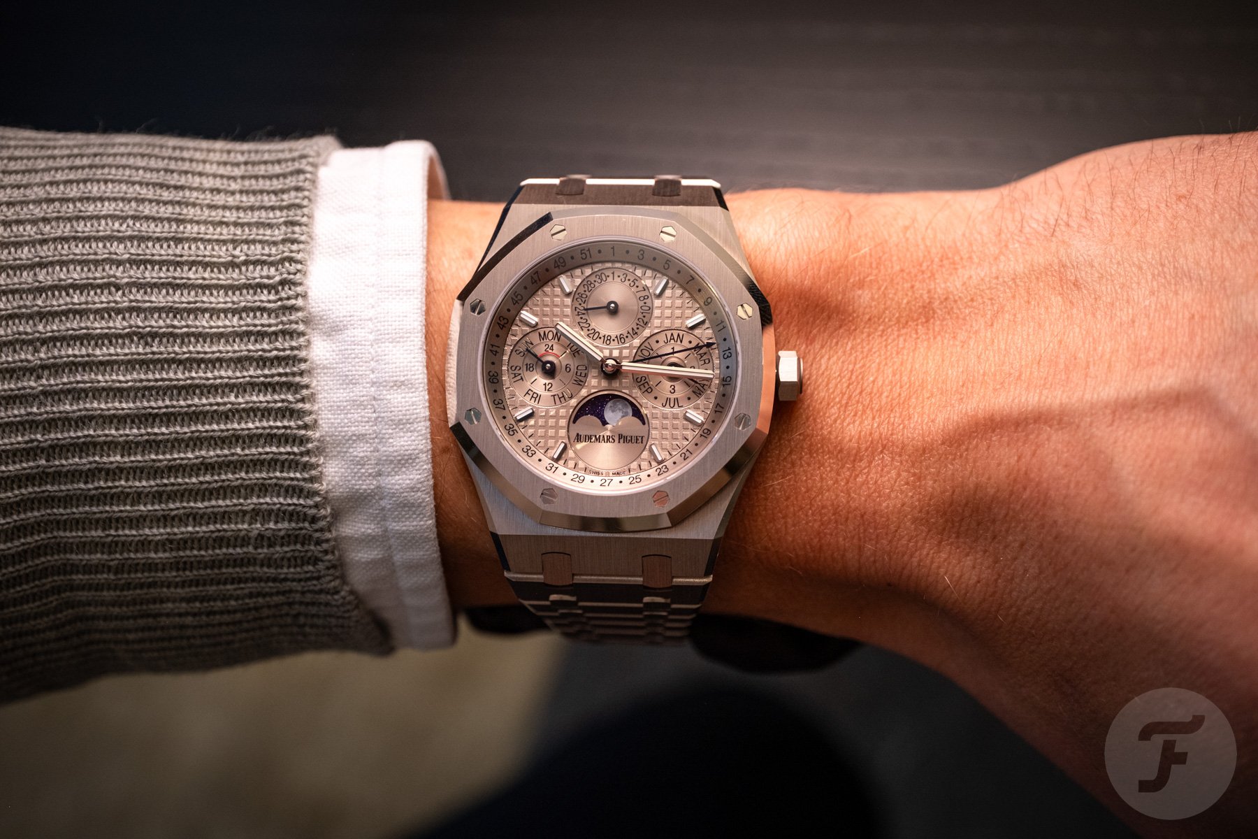 He also wrote a follow-up article about the Royal Oak Perpetual Calendars after having the chance to do a hands-on review. As mentioned, Audemars Piguet introduced three references with this caliber, but our favorite is the first of the Royal Oak Perpetual Calendar in stainless steel with a blue dial (ref. 26674ST.OO.1320ST.01). You simply can’t beat this classic combo of materials and colors.