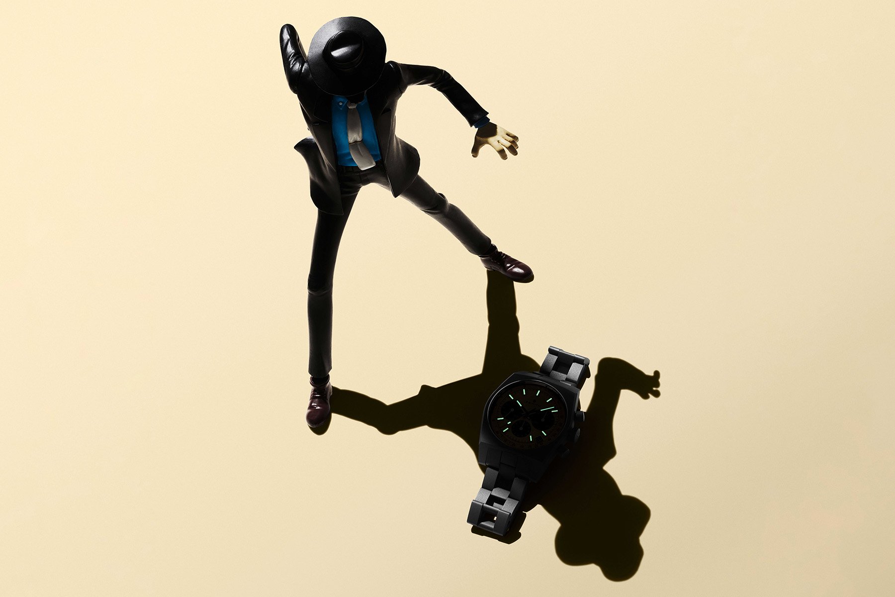 As soon as you see this new watch, you might think that it resembles the panda-dial Second Edition in the previous trilogy. However, this new version was created to more accurately resemble the watch that Daisuke Jigen wears in the popular Japanese animation series.