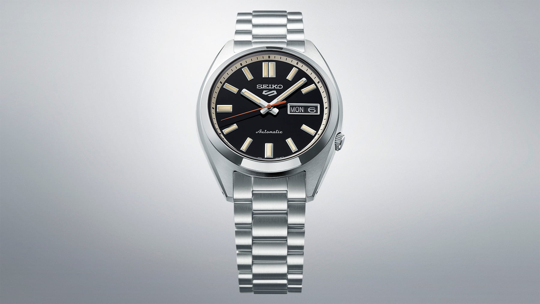 Our fifth and final pick for this list is a trio of Seiko 5 Sports watches that debuted two years ago. The SRPK87, SRPK89, and SRPK91 each feature a nice 37.4mm stainless steel case with a 12.5mm thickness and a 44.7mm lug-to-lug. The case is paired with a dark blue, black, or champagne-colored dial with a contrasting rehaut and markers filled with beige Seiko Lumbrite.