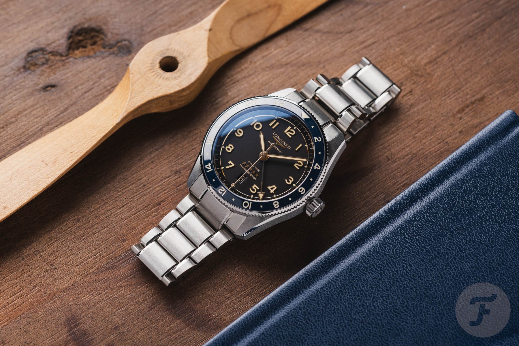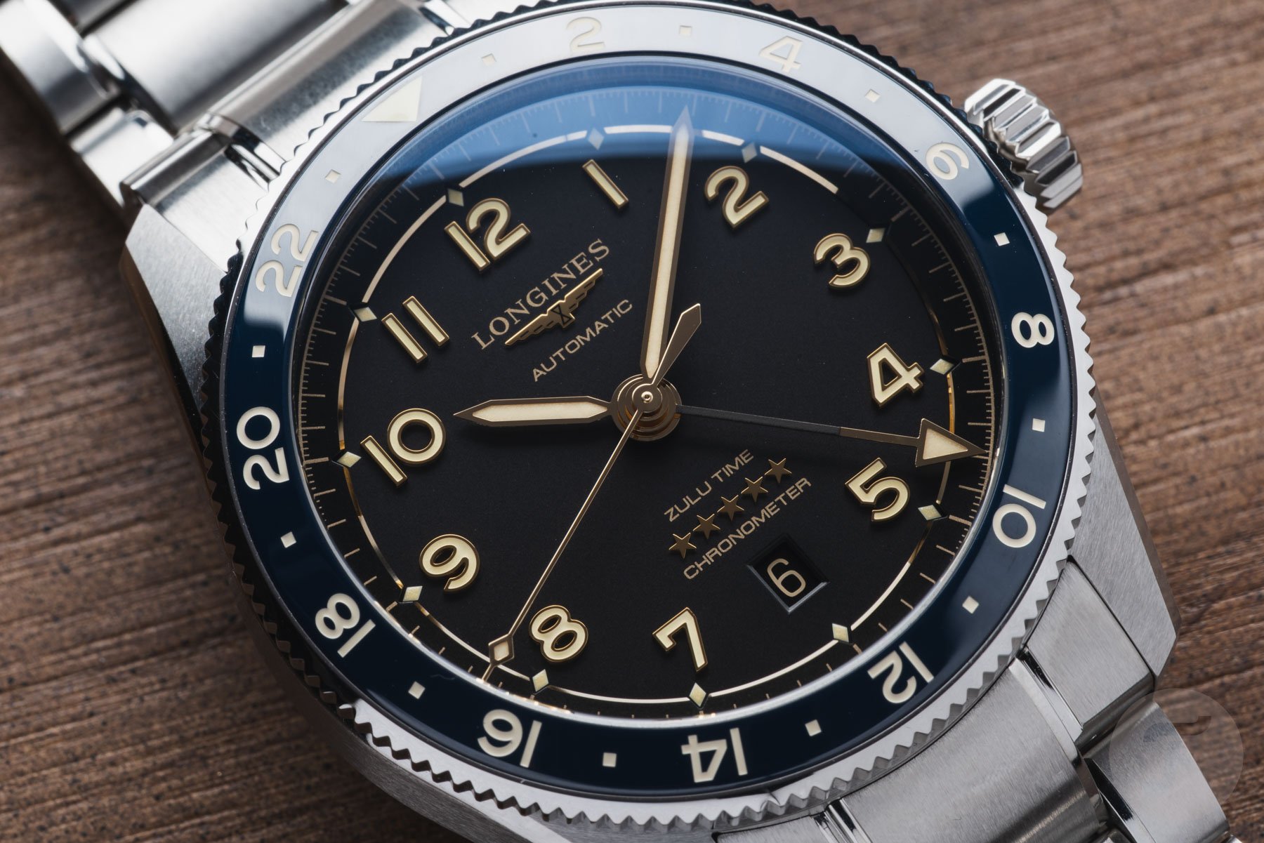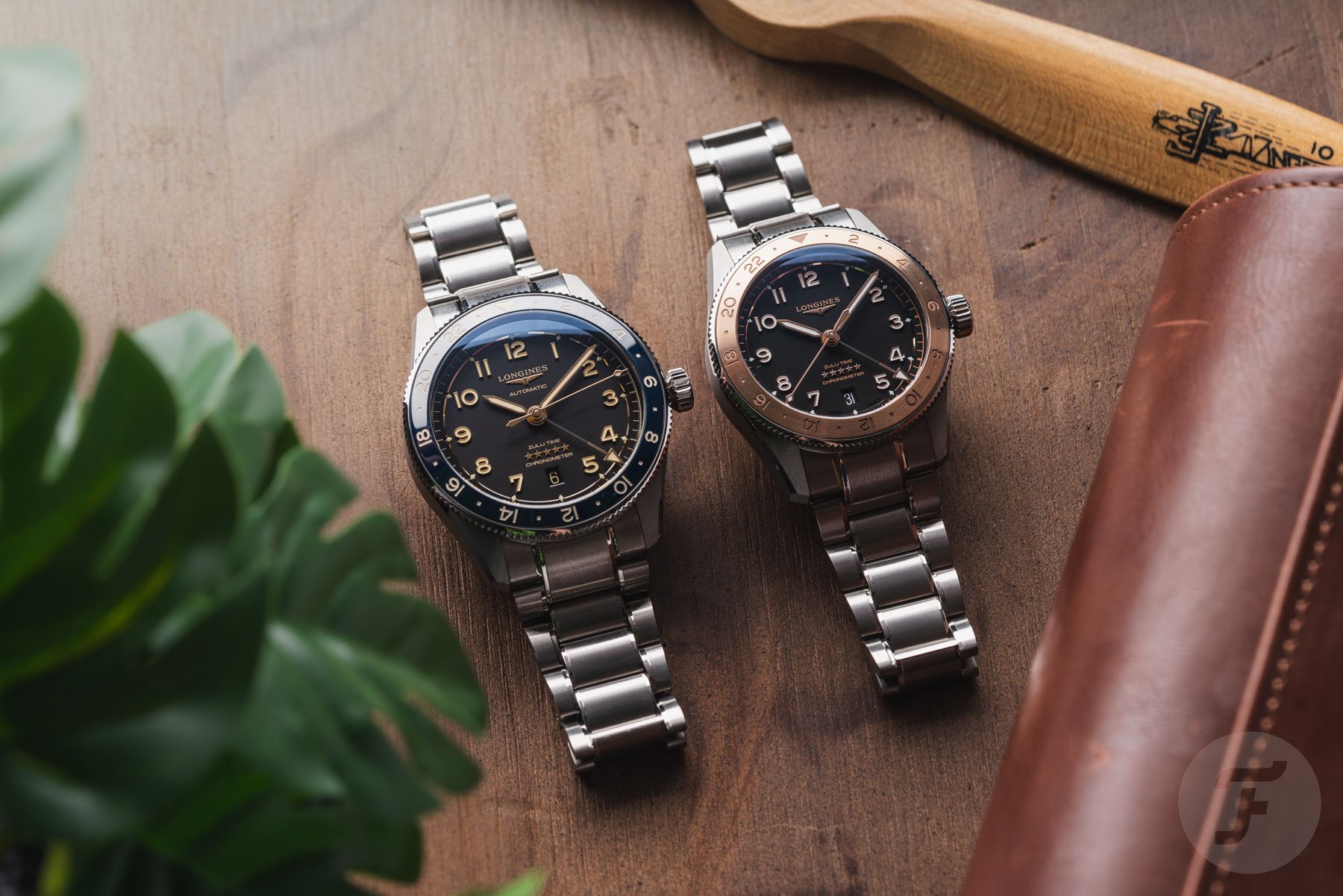 Our next pick is the popular Longines Spirit Zulu Time series. The watch debuted in a 42mm size in 2022, and the smaller 39mm version joined the collection a year later. While both are great options, we prefer the smaller 39mm form as it is a bit more versatile and better proportioned. Over time, Longines released a string of 39mm models, including two-tone, titanium, and various color combinations. The fun thing is that if you ask different Fratello team members for their favorite from the lineup, you will get different answers. Mine are the regular green-and-black model and the full-titanium version created in collaboration with Hodinkee.