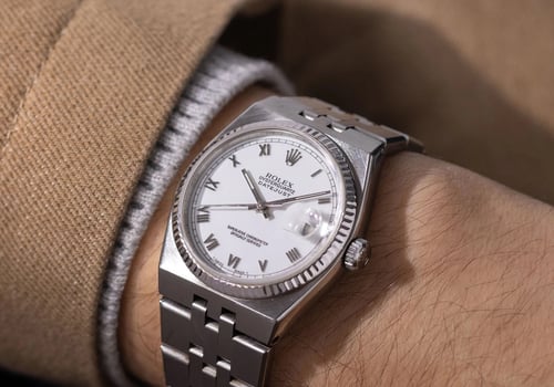 The Oyster Perpetual Date ref. 1530 featured a then-new 36mm case and an integrated bracelet, which are the visual links to the current Land-Dweller. All of these watches came fitted with a silver dial. However, if you look up examples on the pre-owned market today, many will have different dial colors. Over time, the dials discolored and developed a nice patina, resulting in both lemony-yellow and darker taupe shades. Another fun detail is that the Oyster Perpetual Date ref. 1530 was one of the first Rolex models fitted with a sapphire crystal.