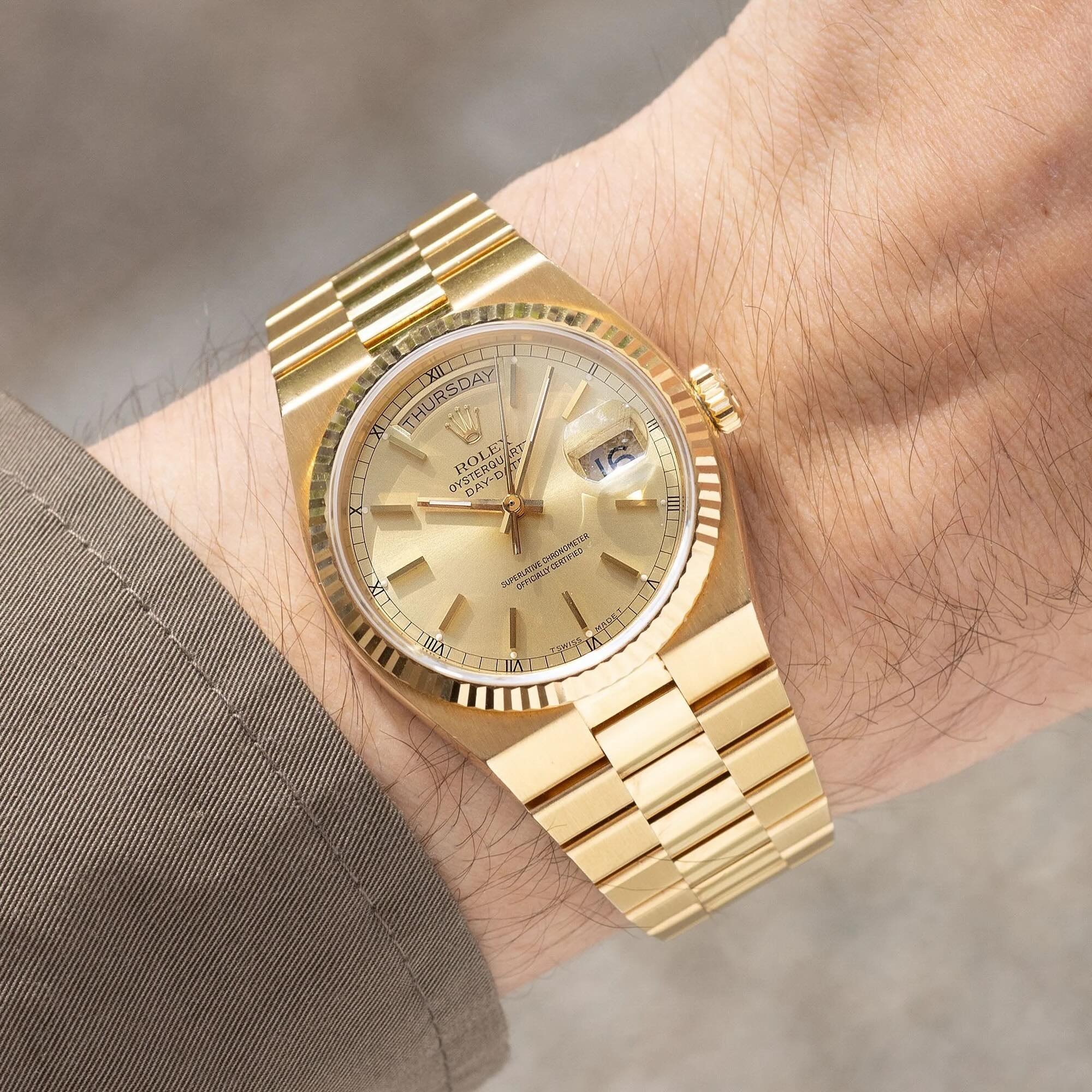 Inside the case, Rolex used the caliber 5055. Just like the Datejust caliber, it was a COSC-certified chronometer and a joy to behold. As already mentioned, collectors praise this movement because it was built like a mechanical one and is, therefore, far more interesting to see than the majority of quartz calibers. Both the yellow gold and white gold Oysterquartz Day-Date models stayed in production from 1977 until 2002.