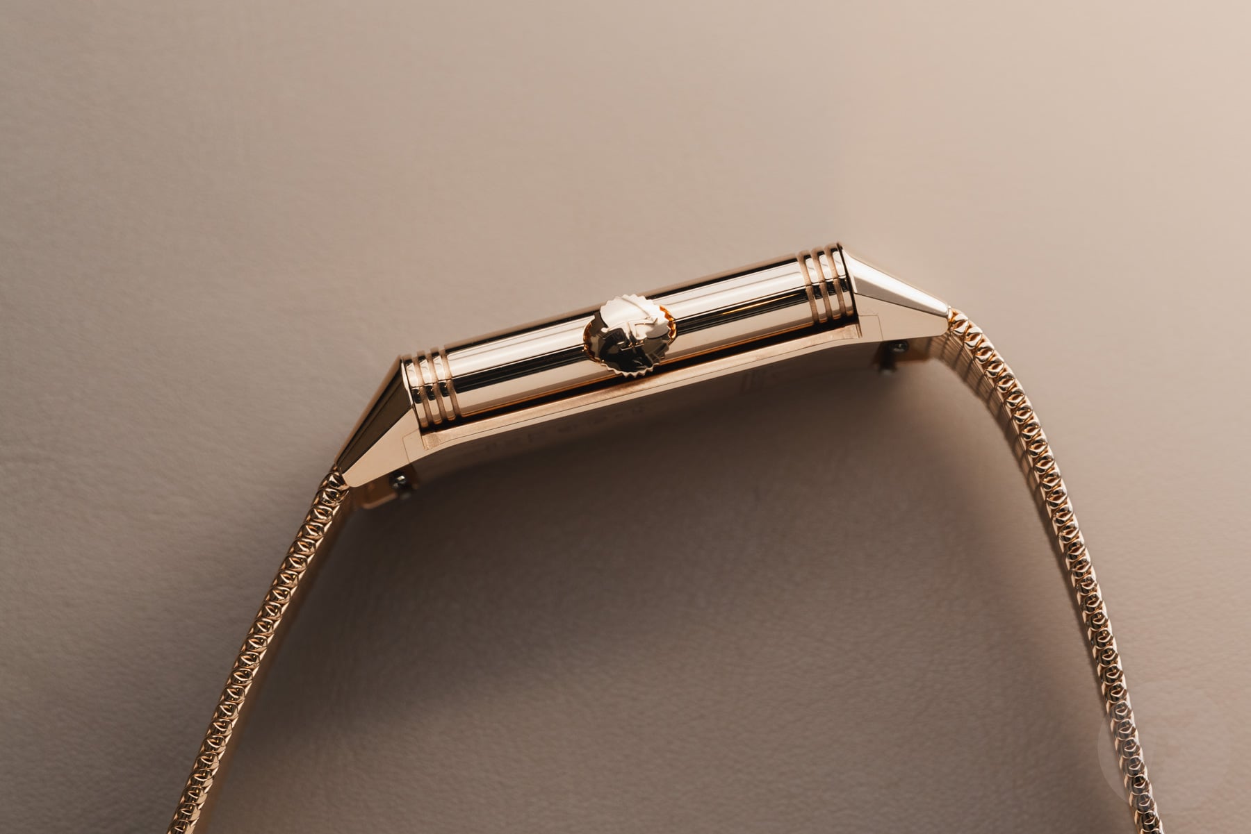 It immediately demands attention without being loud. Additionally, the designers at Jaeger-LeCoultre made sure there is plenty of detail to admire. The big story, of course, is the handmade Milanese bracelet, which requires 16 meters of pink gold wire. It’s a beautiful display of craftsmanship that results in a watch that is super comfortable to wear. On top of that, its integrated sliding clasp is a fantastic solution to provide the perfect fit on the wrist.