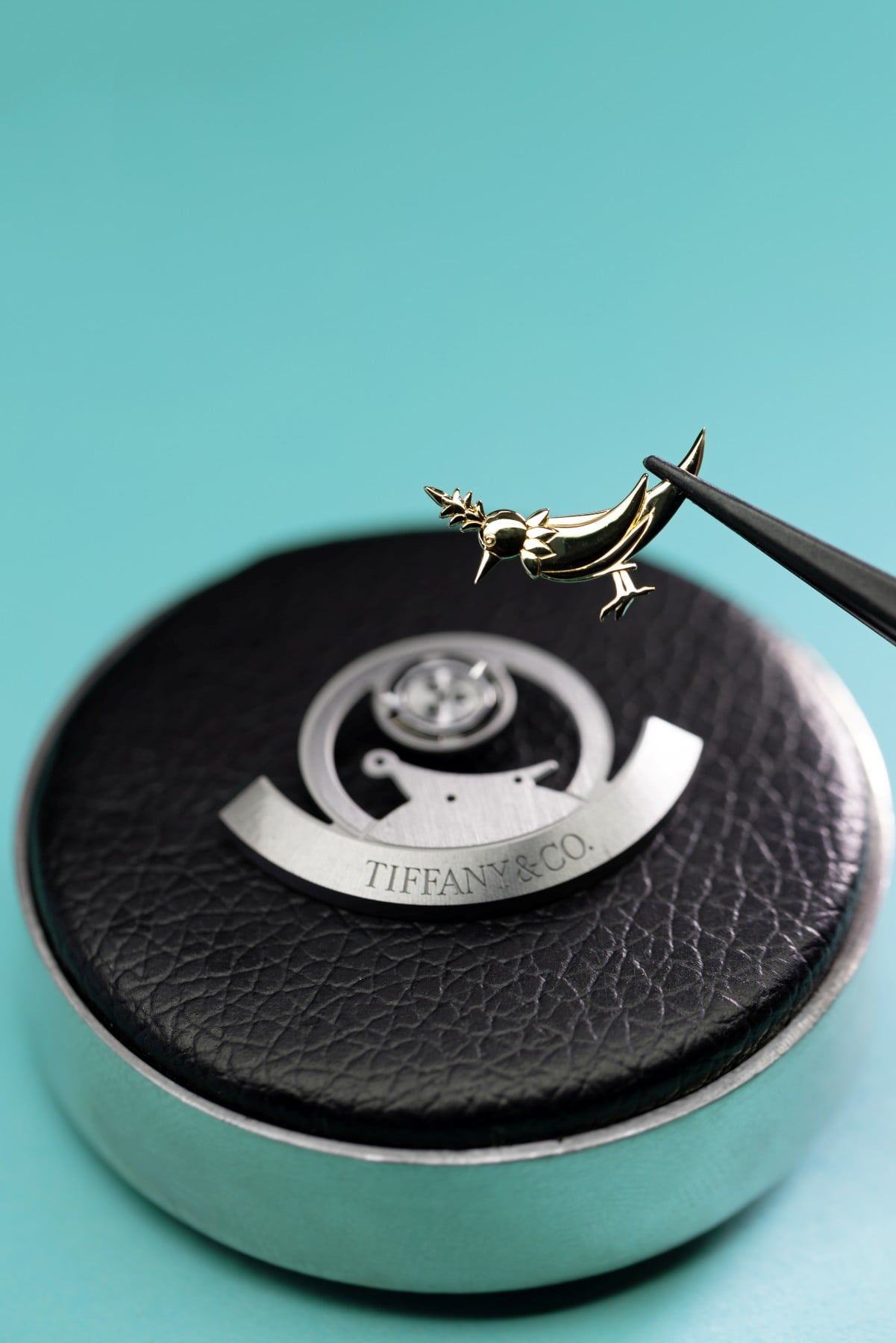 If you turn the Tiffany Timer around, you’ll see a bespoke version of the Zenith El Primero caliber 400. This legendary chronograph caliber operates at 36,000 vibrations per hour and offers a 50-hour power reserve. A striking detail is the customized rotor that features an 18K yellow gold Bird on a Rock that tells an important part of Tiffany’s story, as Lex explained. As you can see on the case back, Tiffany & Co. only produced 60 pieces of this beautiful chronograph, which are undoubtedly sold out by now. We can definitely see why.