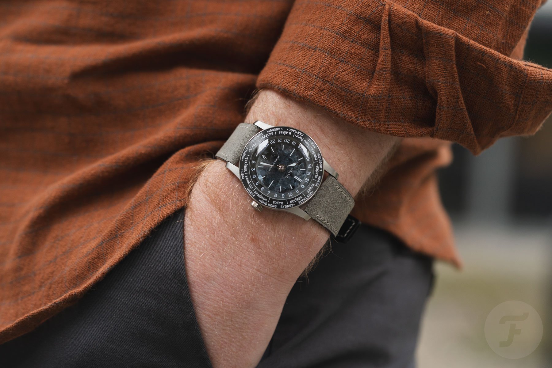 One release we immediately loved was the Heures du Monde series from Baltic. We had two of the three watches in for review, and they immediately captivated us. They have plenty of retro charm and combine it with stone dials and modern materials to make a great trio of travel watches. All three models have a 36mm steel case with a 37mm bezel, an 11.3mm thickness, and a 45mm lug-to-lug, meaning they’ll fit wrists of a variety of sizes very well.