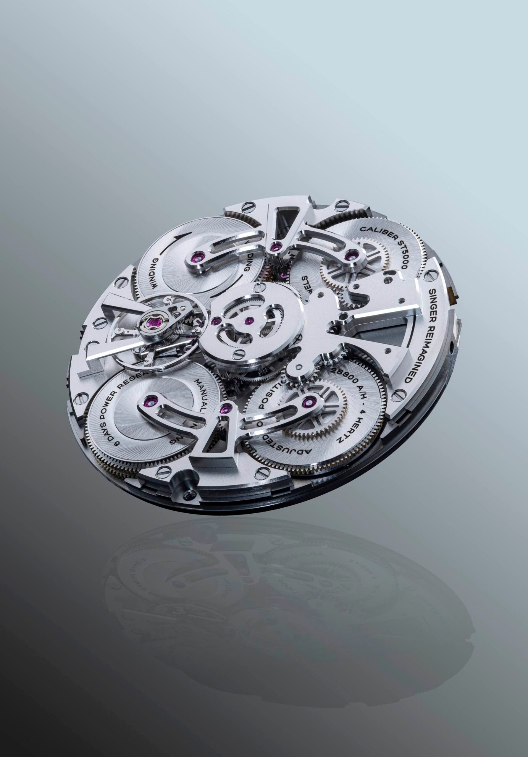 If you turn the watch around, you will see the Singer Reimagined Calibre-4 Solotempo (ST5000). This manual-winding movement operates at 28,800 vibrations per hour and boasts a six-day power reserve. This is possible thanks to the two pairs of twin barrels running in parallel. Additionally, it offers an accuracy rating of -4/+6 seconds per day, which is great for a lightweight daily wearer like the Caballero.