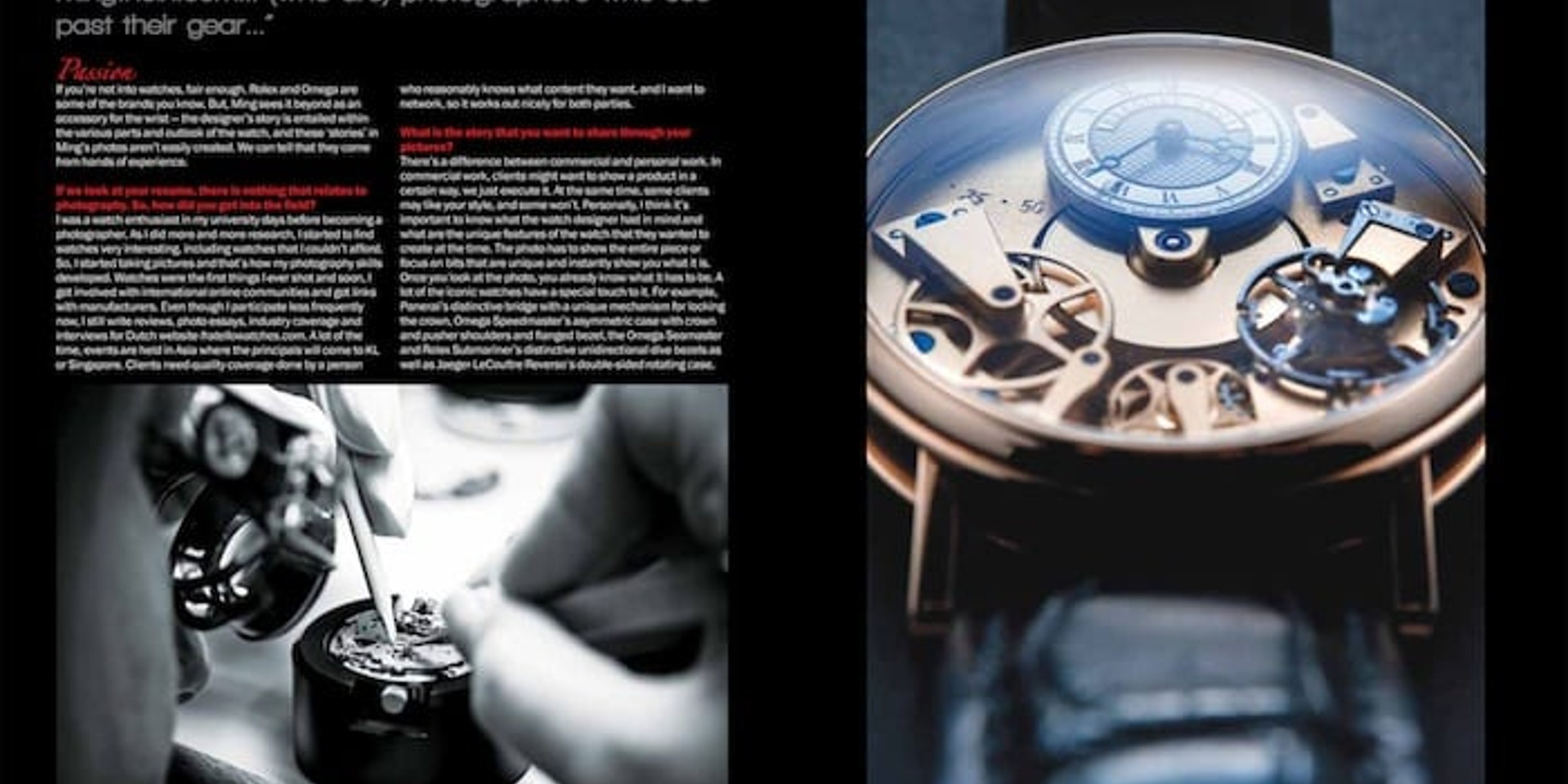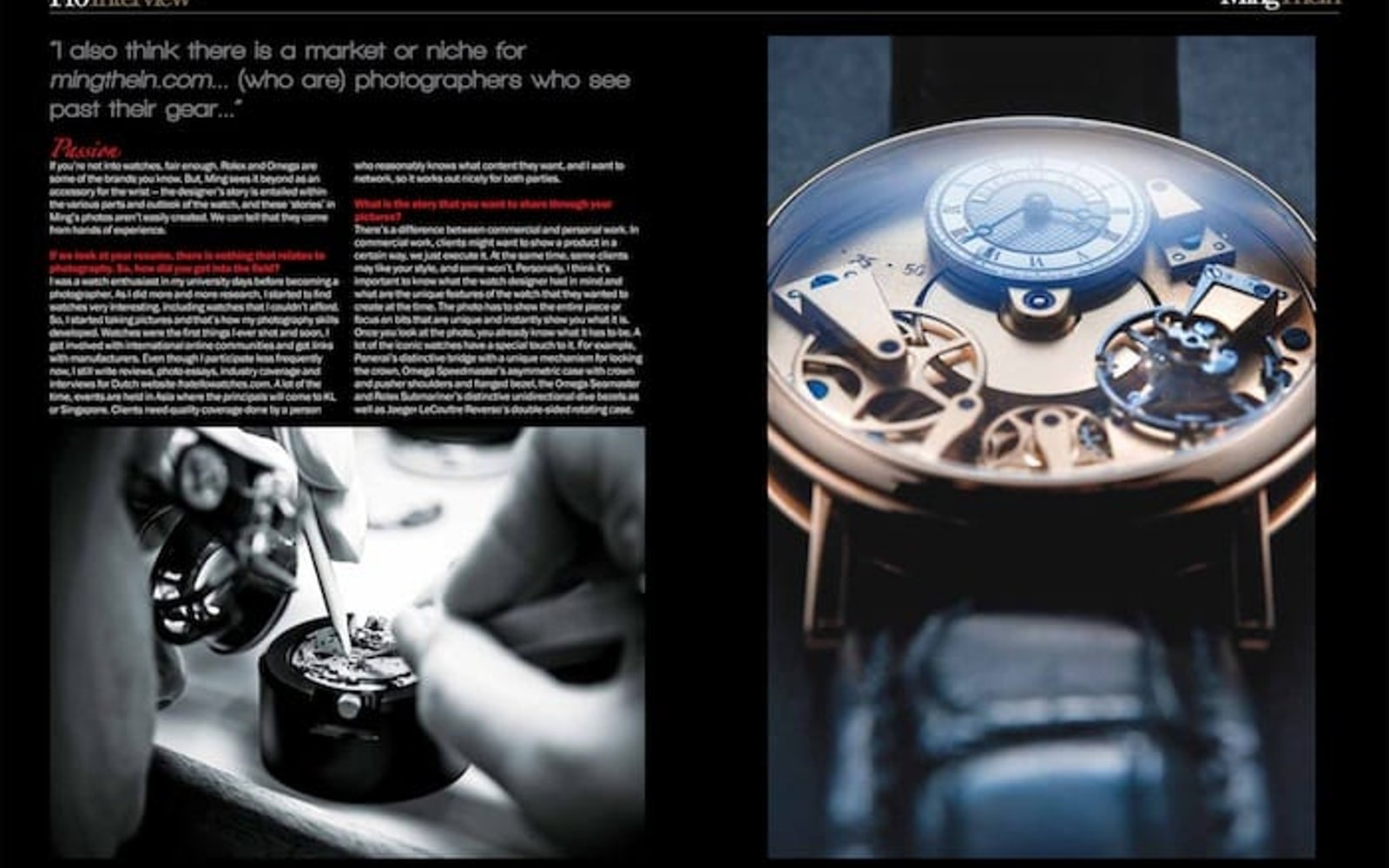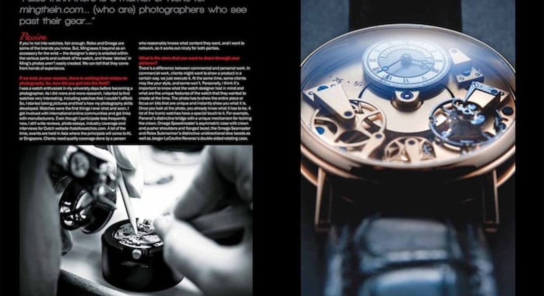 Ming Thein is being interviewed by this photography magazine (the biggest on photography in the U.K.) in February, telling the readers about making his step from a corporate environment to being a professional photographer. Of course, it also tells the reader what we already know, how and why he wants to capture watches with his camera. Although we advice you to order the magazine, you can read the interview with Ming Thein here as well.
