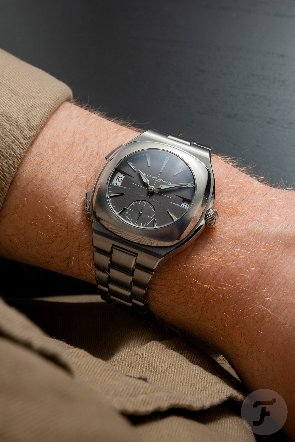 Another remarkable watch introduced this year is the Laurent Ferrier Sport Traveller. This slightly upscaled version of the brand’s most recognizable model adds a dual-time complication. Following up on last year’s dressier implementation of this feature, this is a welcome change. I love the subtle combination of a matte gray dial with the minty/teal lume on its hands and markers. Surpassing the Vacheron Constantin in horological terms, the newly improved LF275.01 caliber inside is a real showstopper. To me, though, it’s the integration of the home time zone and the pushers used to set the local time that I love. Combined with the onion crown and organic shapes of the Sport case, it’s all a little bit odd and asymmetrical. But it brings it all together in a way that makes the watch incredibly charming. This watch was never going to be a crowd-pleaser, but I’m all here for it.