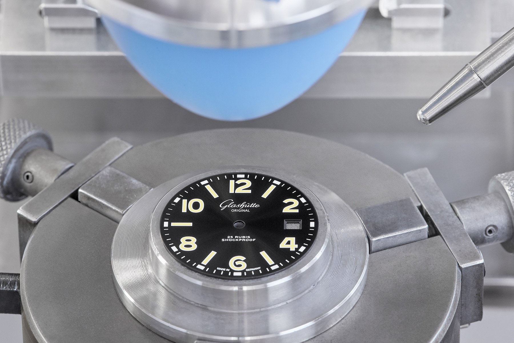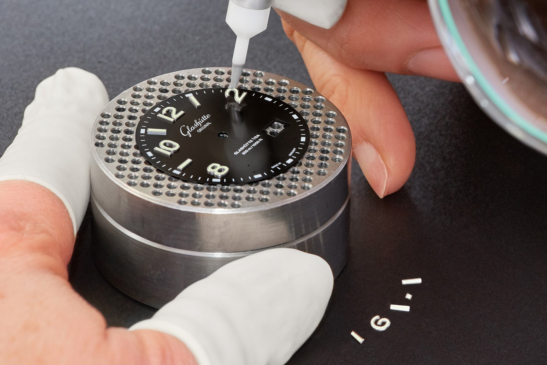 While many brands order their dials from contractors, Glashütte produces their SeaQ dials in-house. For a look inside the process of manufacturing of Glashütte dials, we have to go to Pforzheim in the south of Germany. Pforzheim is known as Gold City in Germany and is located in between Karlsruhe and Stuttgart. The city is the German capital of “Uhren und Schmuck,” or watches and jewelry in English. Brands like Stowa, Laco, and Aristo are from Pforzheim and a lot of the German representative offices of Swiss watch brands are also there.