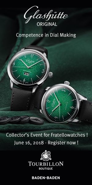 The Glashütte Original event will take place on Saturday 16th, starting at 11:00AM. You will be able to admire and handle all Baselworld 2018 novelties by Glashütte Original, including the new Senator Cosmopolite and Sixties watches with special dials. Meet other watch enthusiasts as well, discuss watches, bring your watches and enjoy the snacks and drinks that will be served that day while you will be exposed to some serious German watchmaking.