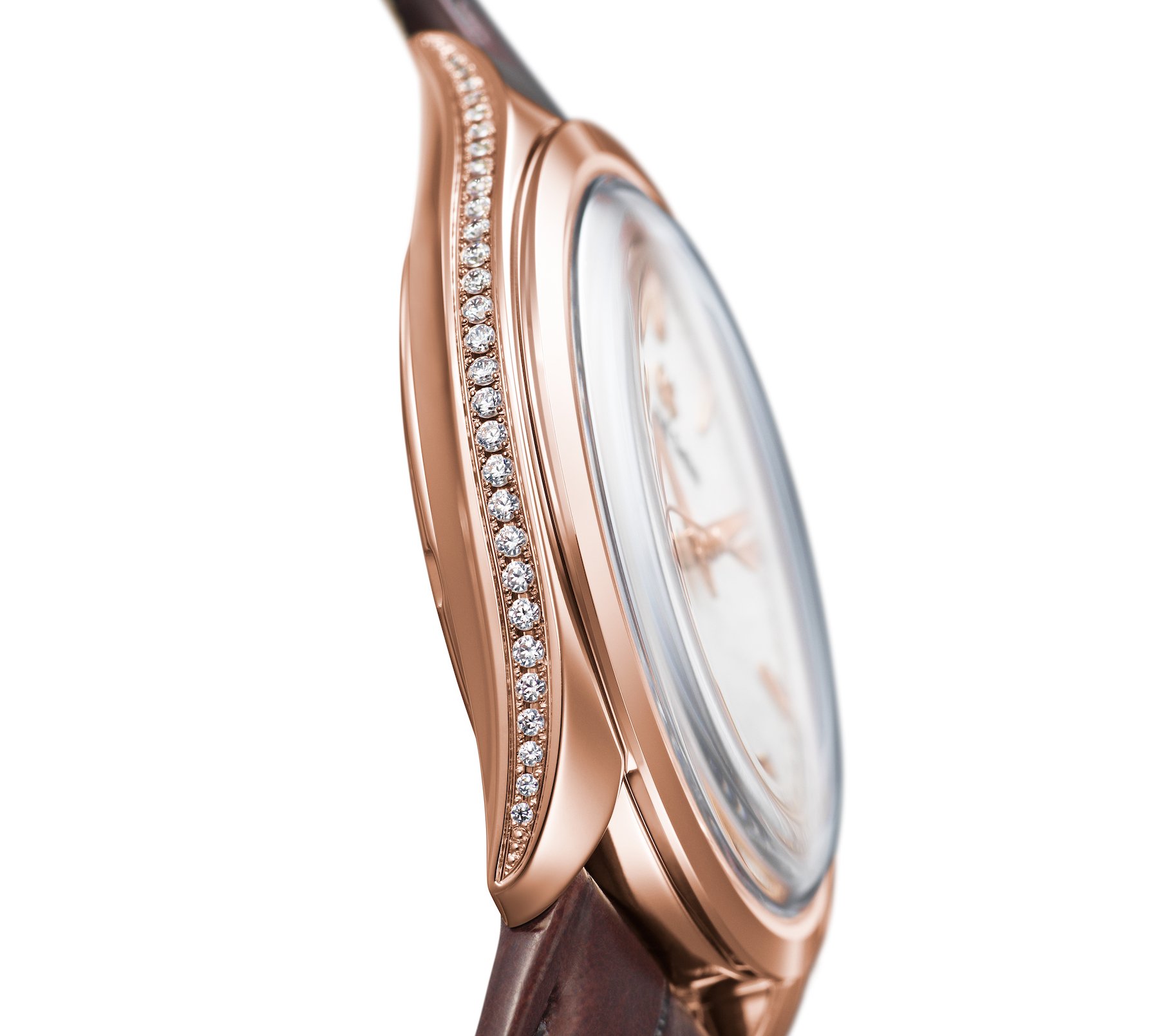 The three-handed Grand Seiko watch paints a lasting memory of the snowy scenes that surround the brand’s manufacturing facility for its Spring Drive watches. It features a pink gold case with matching faceted hands and indexes, discreet diamond detailing, and a classic brown hand-stitched leather strap to soften the entire design.