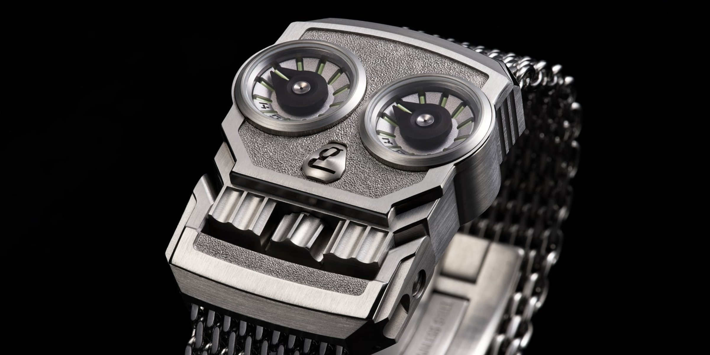 There is something new and scary in small-brand land, and the supremely cool Kopf (“head” in German) from independent watchmaker German Polosin came at me like some steampunk android. Priced at £8,000 (excluding VAT), it’s no budget proposition, but even at first sight, I’m getting MB&F, Otsuka Lotec, and Vianney Halter vibes. And I love the simple but efficient idea of using the “eyes” of the skull to show the time. The skull-shaped Kopf concept watch is based on an ETA 2892 movement with an in-house-designed “Big-Eyes” module showing the hours and minutes.