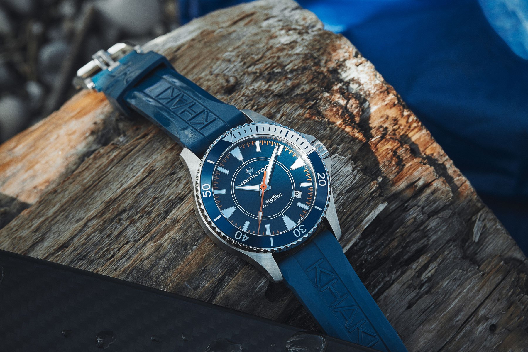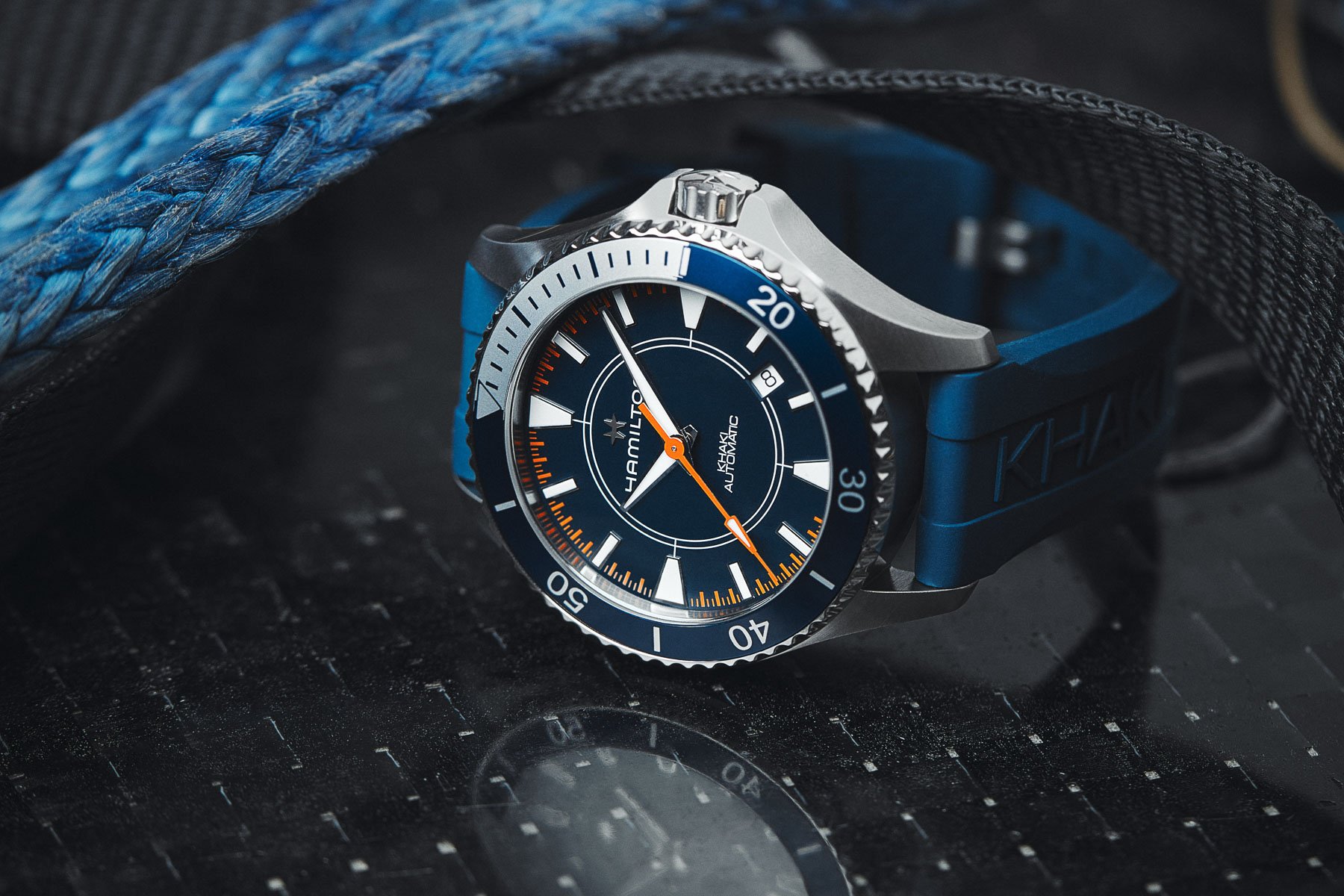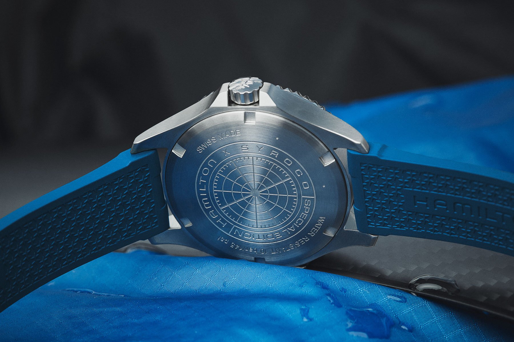 The resulting Khaki Navy Scuba Auto (ref. H82385340) is a water-sports watch that reflects the Syroco branding. Let’s have a look at what Hamilton came up with.