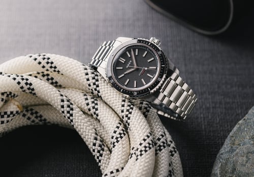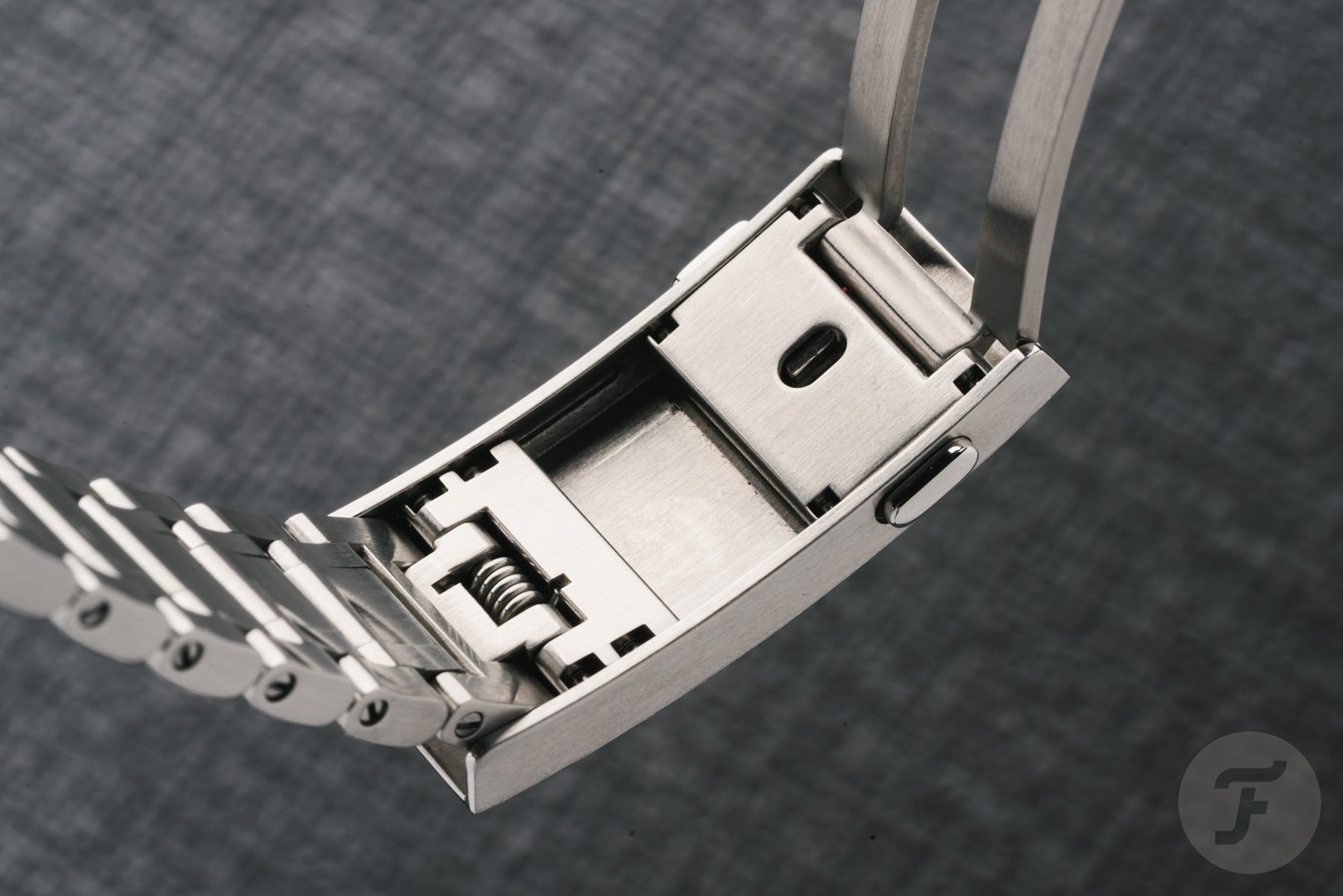 The new Maen Hudson 38 MK5 is available with a five-row bracelet that’s similar to what previous versions had. But the brand has also upgraded the bracelet, which now features quick-release end links. Additionally, the clasp now contains a toolless micro-adjustment system, making on-the-fly sizing easy.