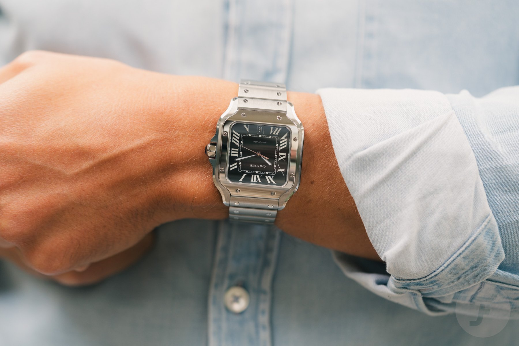 Hands-On: Two Sporty New Variants Of The Cartier Santos — One In Titanium, The Other In Steel With A Black Dial And Lume