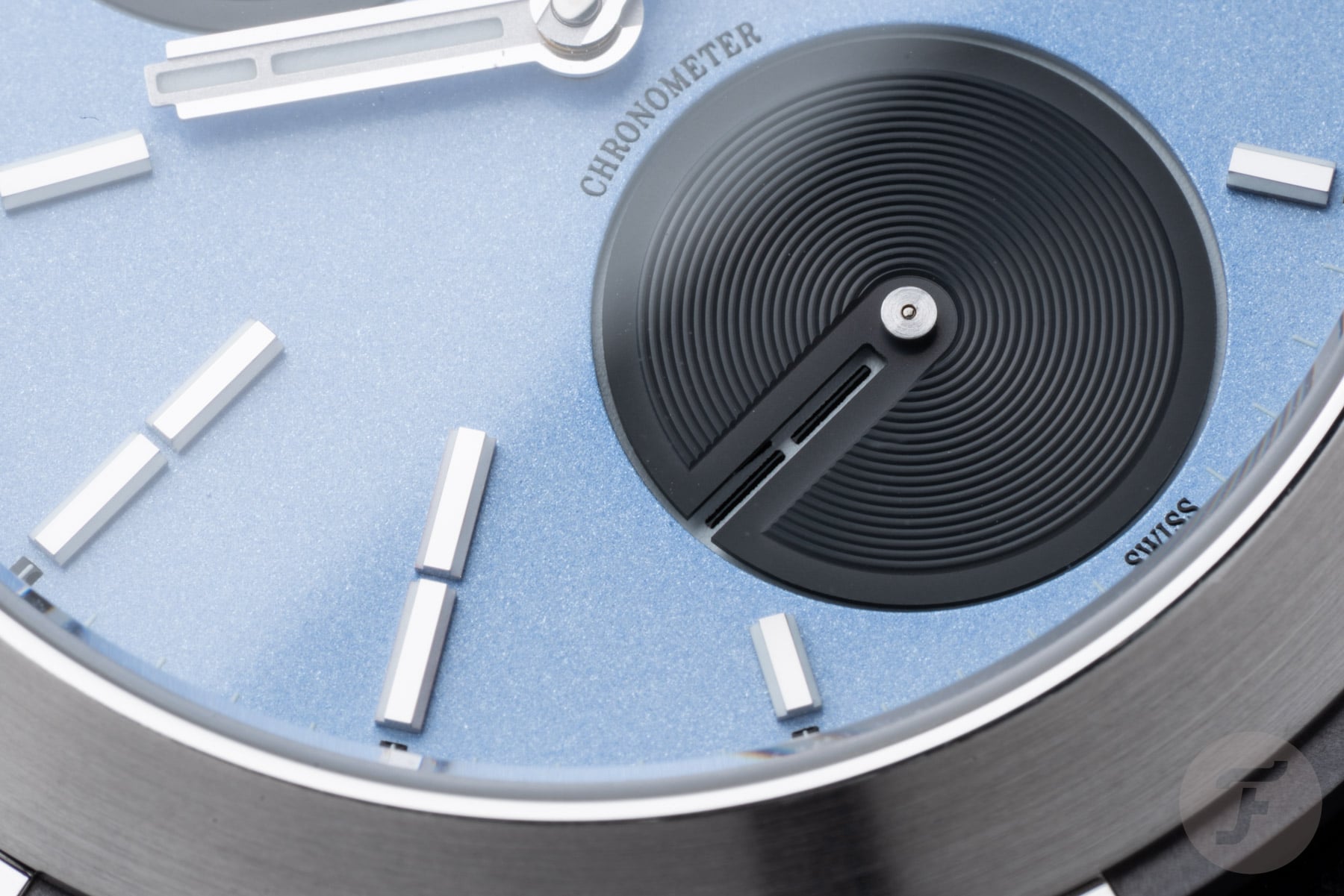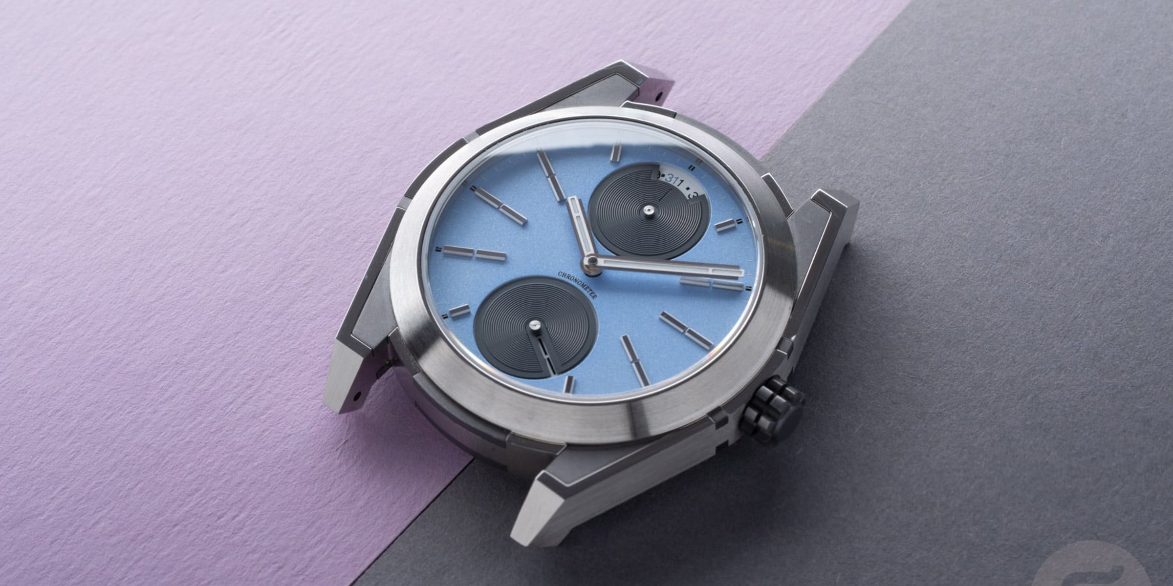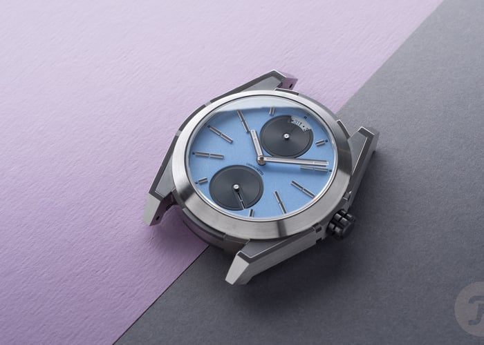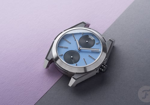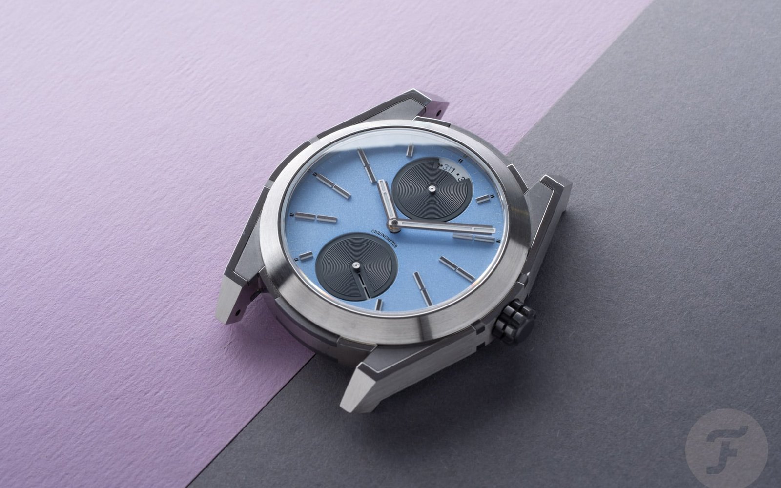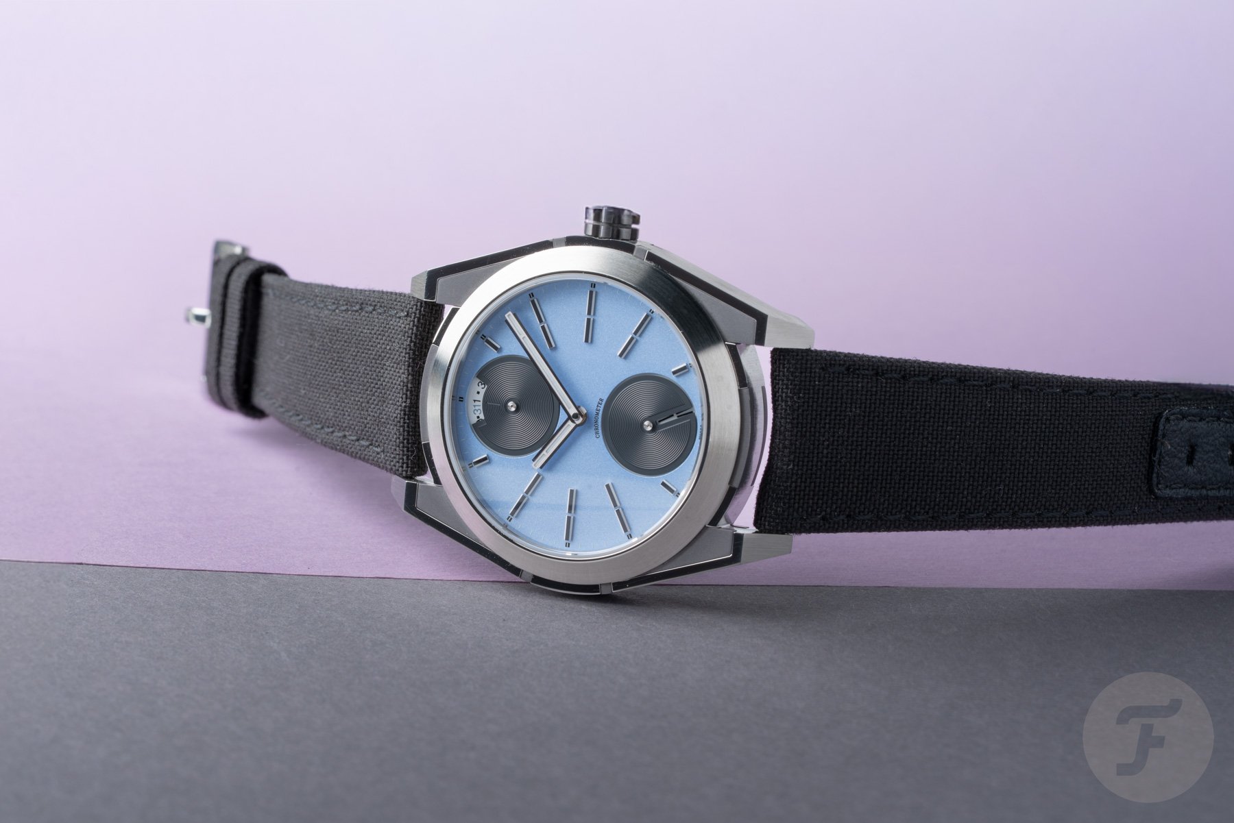 Apart from the addition of tantalum, the dial is also new. Pragma calls the hue “azurite” after the deep blue copper carbonate mineral, but I can’t help but think of lavender when I look at it. The slight sparkle, however, is more like a mineral than a flower.
