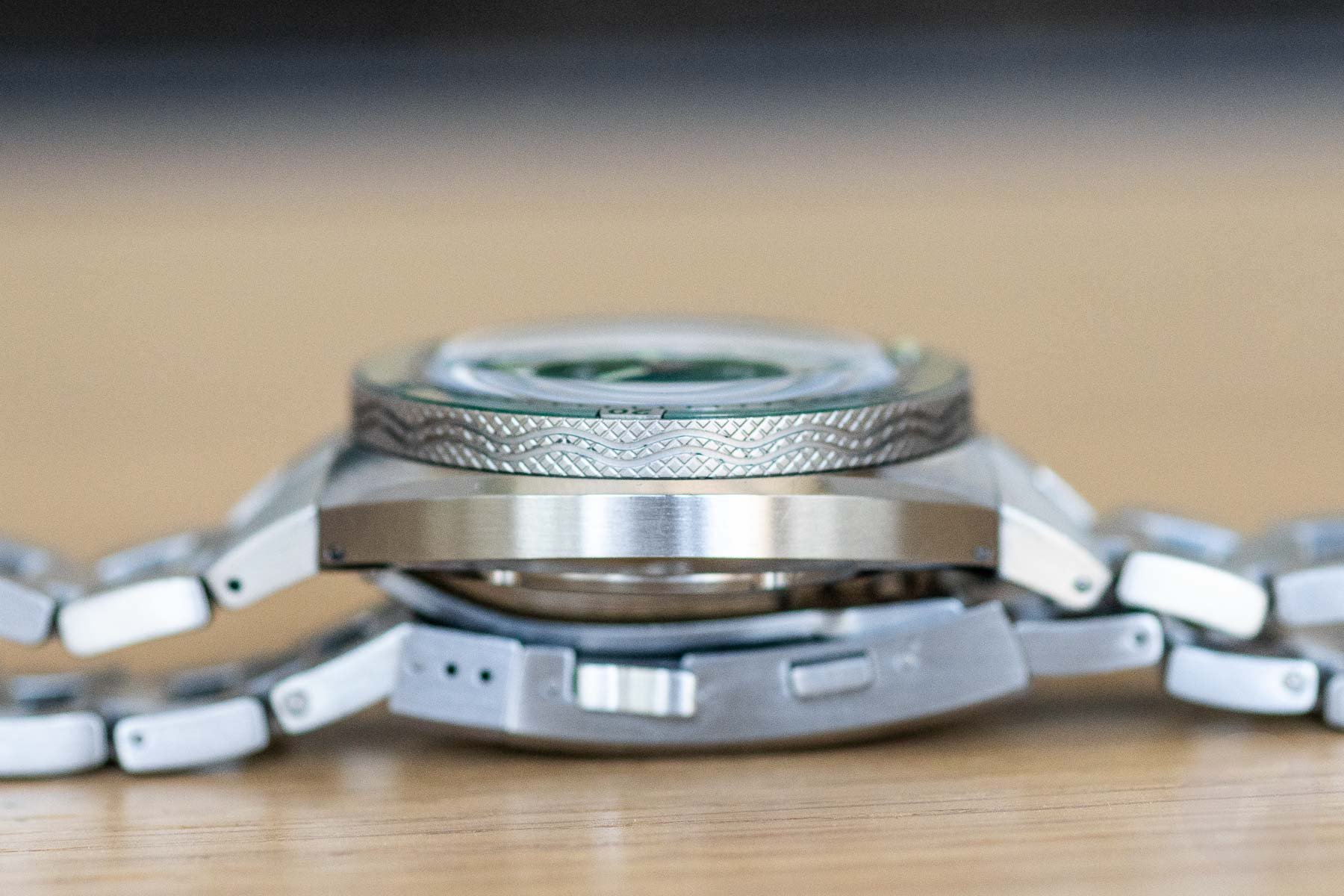 As mentioned initially, I am still relatively new to the watch world. Of course, I can distinguish between a Cartier Tank and a Patek Philippe Nautilus. I know that the Speedmaster was on the Moon and that you can wear a Batman or Hulk on your wrist. And, of course, the design of Richard Mille can be pretty divisive. But in all the articles I’d read, videos I’d watched, and podcasts I’d listened to, I hadn’t yet come across a steel ladder bracelet. And that’s precisely what the Taucher 2 has. The shape is reminiscent of a ladder by omitting every second link in the middle section. This means that air is constantly coming to the wrist, which I have found very pleasant while wearing the watch. If you are a fan of the steel ladder bracelet, I also found out that the Zenith Chronomaster El Primero A384 Revival is worth a look.