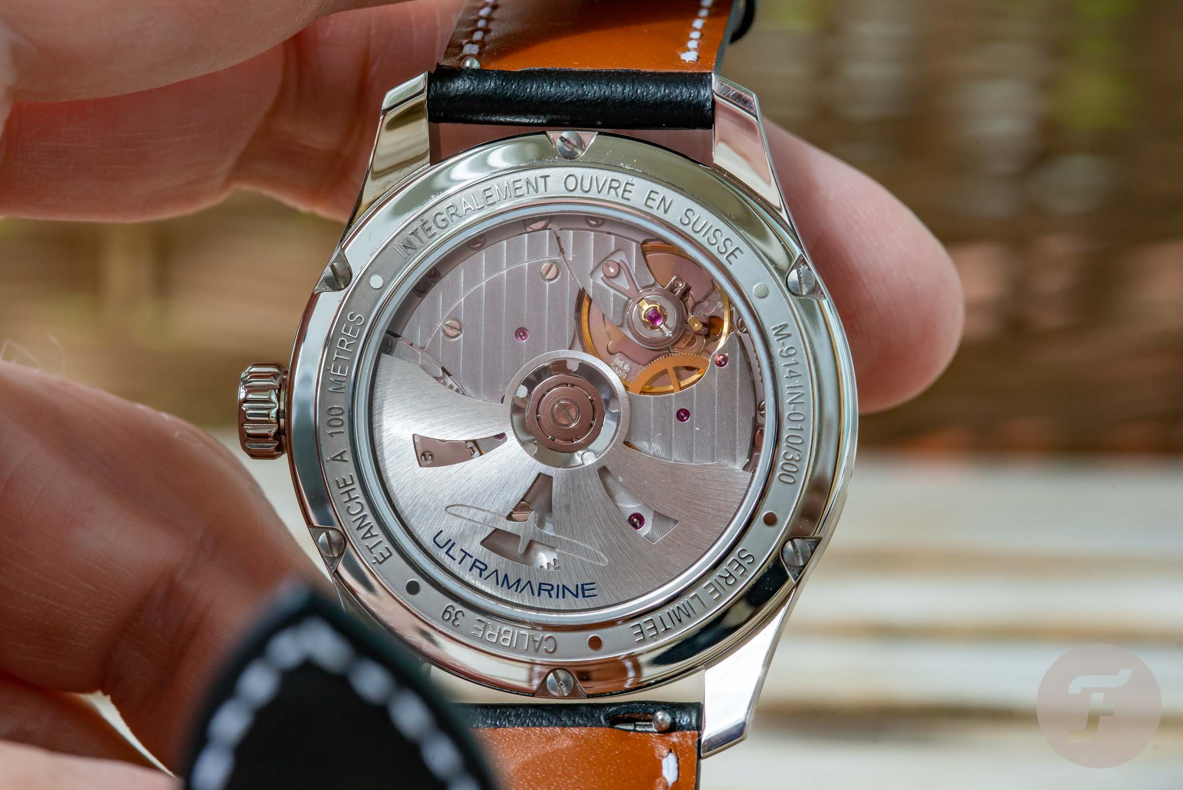 So for Ultramarine, to the screws, only 100% Swiss parts manufacturers were chosen. Ultramarine cases are made at Bouille in Neuchâtel. The dials at Fehr in La Chaux-de-Fonds. Hands are made, piece per piece in Haute Horlogerie quality, at GMG in Le Locle. Sapphire glasses at AB Saphir in Courgenay. Last but not least, Creation Perrin Suisse in La Chaux-de-Fonds produces the hand-sewn leather straps, while buckles are made by Cornu, also in La Chaux-de-Fonds. Finally, the watches are assembled by MTK2.0 in Bulle, which company also takes care of the after-sales service.