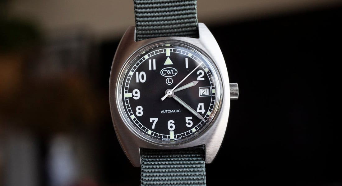 The first watch that Mellor’s company sold to the British MoD was the W10. Hamilton had made the W10 before leaving the UK, and since the need for a hardy field watch was still there, CWC continued making it. The W10 was a highly legible time-only watch housing a mechanical hand-wound movement inside a 38mm case. However, these watches feel larger on the wrist because of the case’s tonneau shape.
