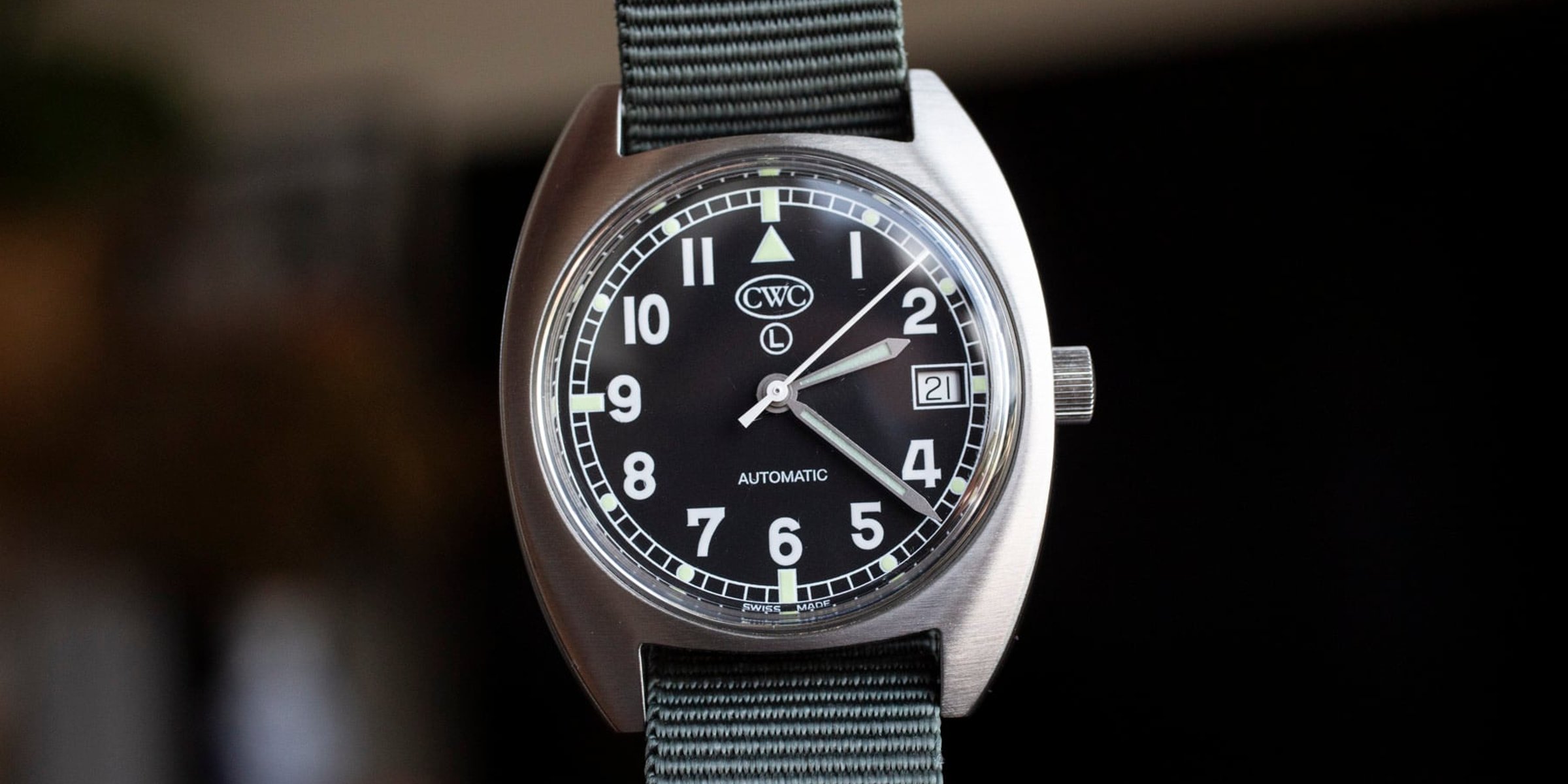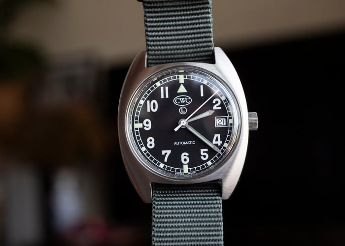 Today’s hands-on is with CWC’s W10 Navigator. It’s a “what if?” design incorporating modern elements into the traditional W10 (now sold as the Mellor-72). These include a date complication and automatic movement. In essence, though, the Navigator retains the essential form factor of the original W10 from the 1970s.