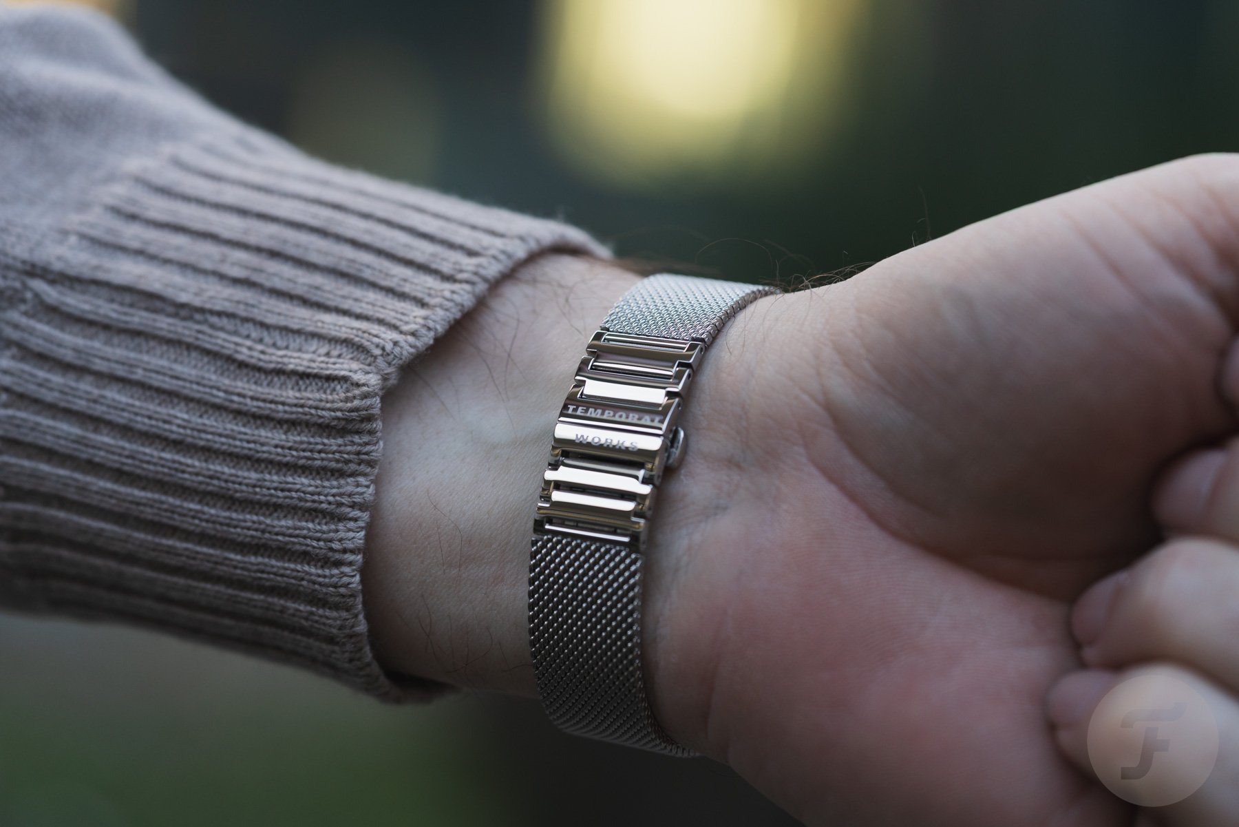 All three watches come with a calf leather strap made by Jean Rousseau, a company founded in 1954 that is well known in the watch industry. Temporal Works didn’t take any shortcuts here either. The same applies to the optional 19mm stainless steel mesh bracelet, which features a butterfly clasp. This bracelet comes in three sizes — you can see the medium here, which fits my 18cm (7.1″) wrist perfectly —and includes removable links, making it easy to resize by yourself.