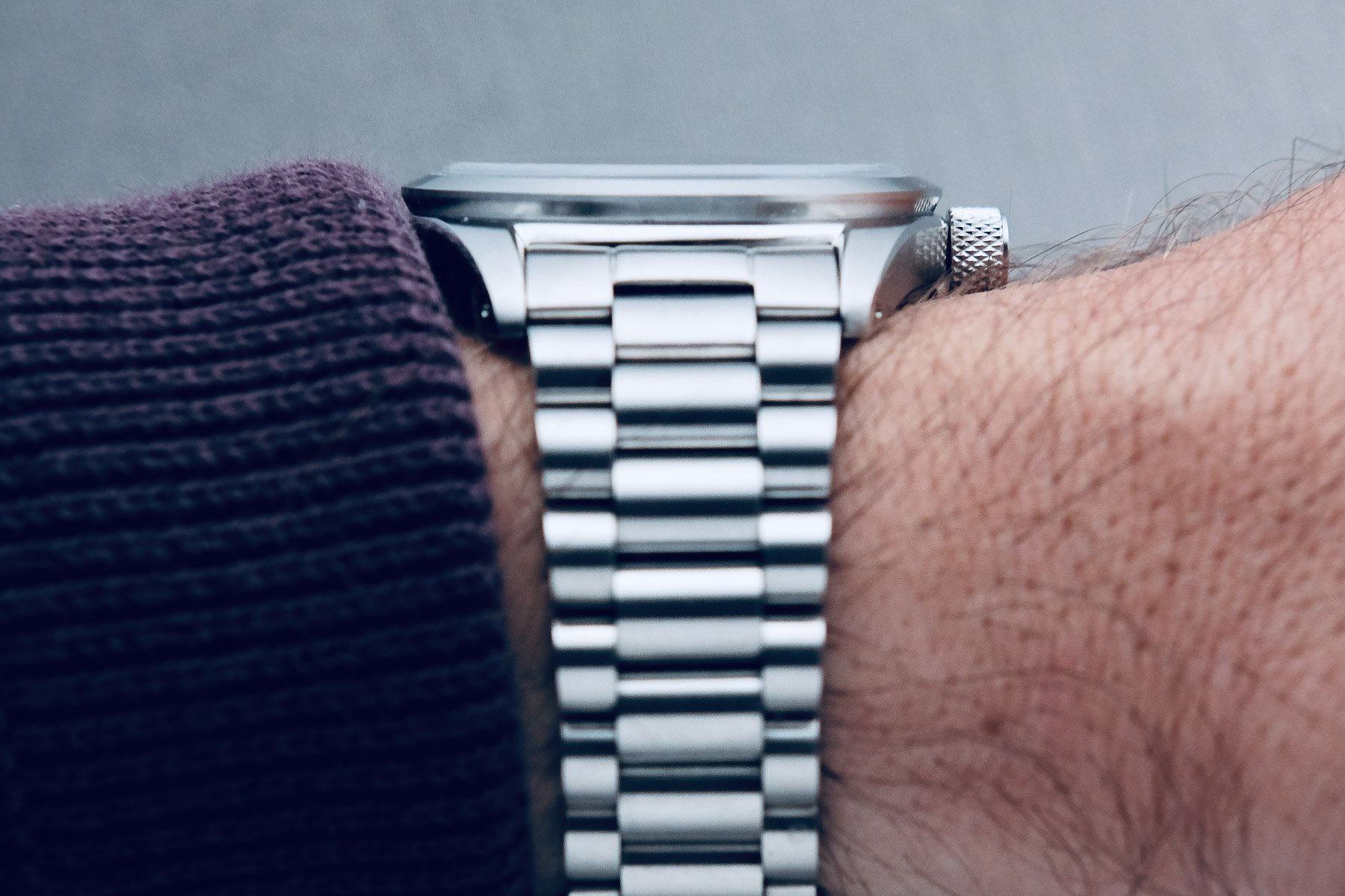 I know, it’s not Rolex-Explorer-124270 small. But all dimensions considered, the Heartlander is smaller than many watches out there. You would have to try it on or take my word for it that it feels like a 36mm watch. This is due to its thin case profile and short lug-to-lug distance. The watch looks flat — very flat — almost as if it had been put inside a tortilla press. And this impression of having a small watch is reinforced by the bracelet design. The latter tapers from 20mm at the lugs to 16mm at the clasp. It fits the overall look of the Heartlander, and it is comfortable to wear.
