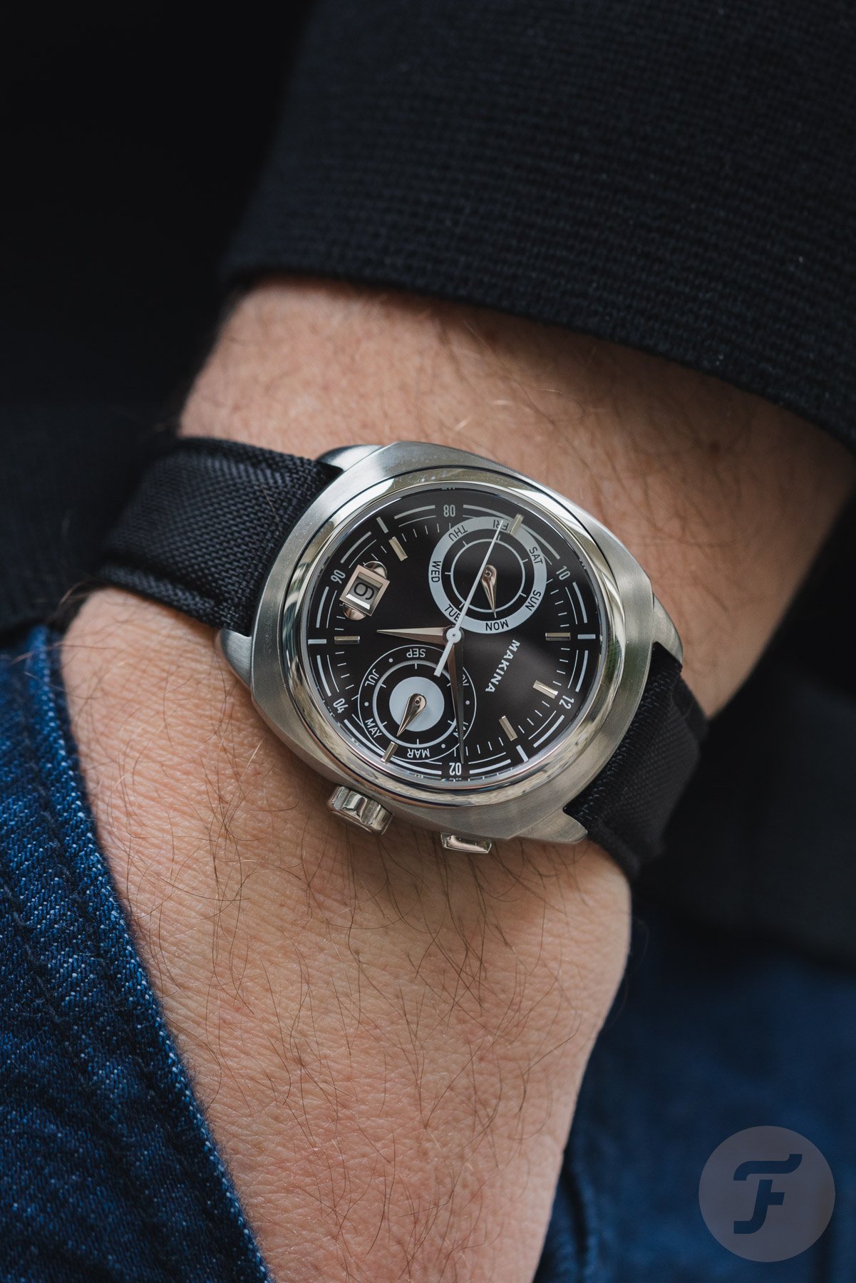 In terms of presence, the Makina Uriel_VII reminded me somewhat of the classic Heuer Camaro chronographs. If you ask me, that is a big compliment because I adore the Camaro as one of the great chronographs that Heuer made in the 1960s. If you are looking for a calendar watch with a similar charm to classic cushion-shaped chronographs, this Makina Uriel_VII could be a nice choice.