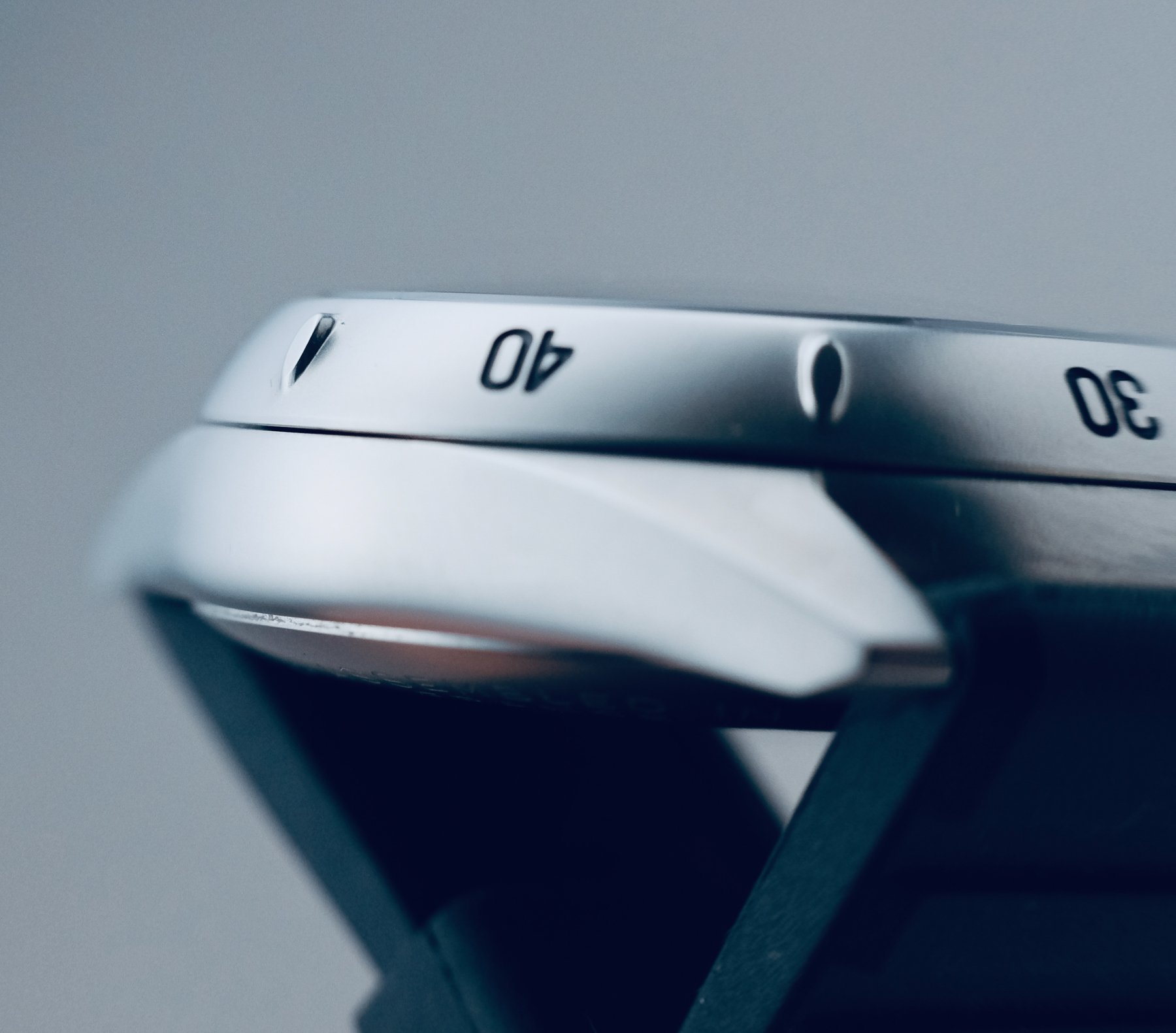 Last but not least, the bezel is quite different from what you may be used to. It’s thin and slopes downward towards the mid-case. This shape makes sense when looking at the overall case design; they went full force on the pebble idea. This uniformity in the design makes the LM01 very pleasing to look at and to wear. And let’s not forget the watch dimensions, of course — 40mm in diameter, 50mm from lug to lug, and 15.5mm tall including the domed sapphire crystal.