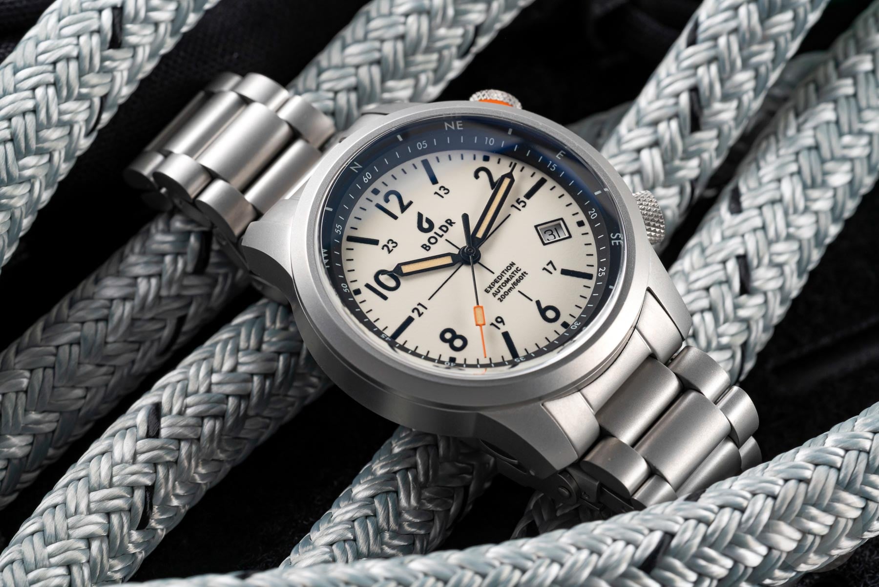 In its return, the BOLDR Expedition I undergoes a thematic change as well as an aesthetic one. The previous models took their names from mountains and other “majestic formations in the natural world” (as the brand itself describes it). These new ones, however, take inspiration from the desert. That’s something the Expedition II Dune 7 hinted at with its warm, sandy tones. The new models, however, display three different kinds of desert sand. We have the Expedition Karakum (a name which translates to “black sands”), the Expedition Rub’ al-Khali (with its warm dial), and finally the Expedition White Sands, featuring a tuxedo-style dial. These keep the Expedition DNA alive, as versions of these colorways have been featured in previous iterations of the watch. However, whereas the Expedition II featured a dive-style internal bezel (except for the Dune 7), the Expedition I goes back to the compass-style bezel.