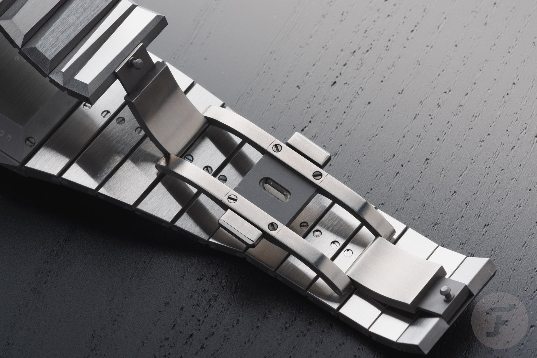 Once you put the watch on your wrist, you also get a good idea of how special the asymmetrical bracelet is. It is beautifully designed, with a natural flow that tapers beautifully towards the hidden butterfly clasp.