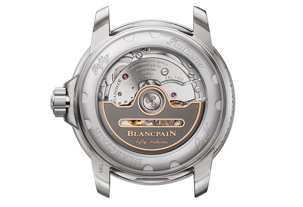 Powering it all is the Blancpain caliber 1153 — an in-house automatic movement with a generous 100-hour power reserve. It features a silicon balance spring for stability and resistance to magnetism, along with all the finishing one would expect from the brand. The transparent case back gives you a full view of the movement, grounding the watch firmly in modern luxury watchmaking while still honoring its utilitarian roots. In short, the pink dial does not make the Fifty Fathoms anything less than a Fifty Fathoms.