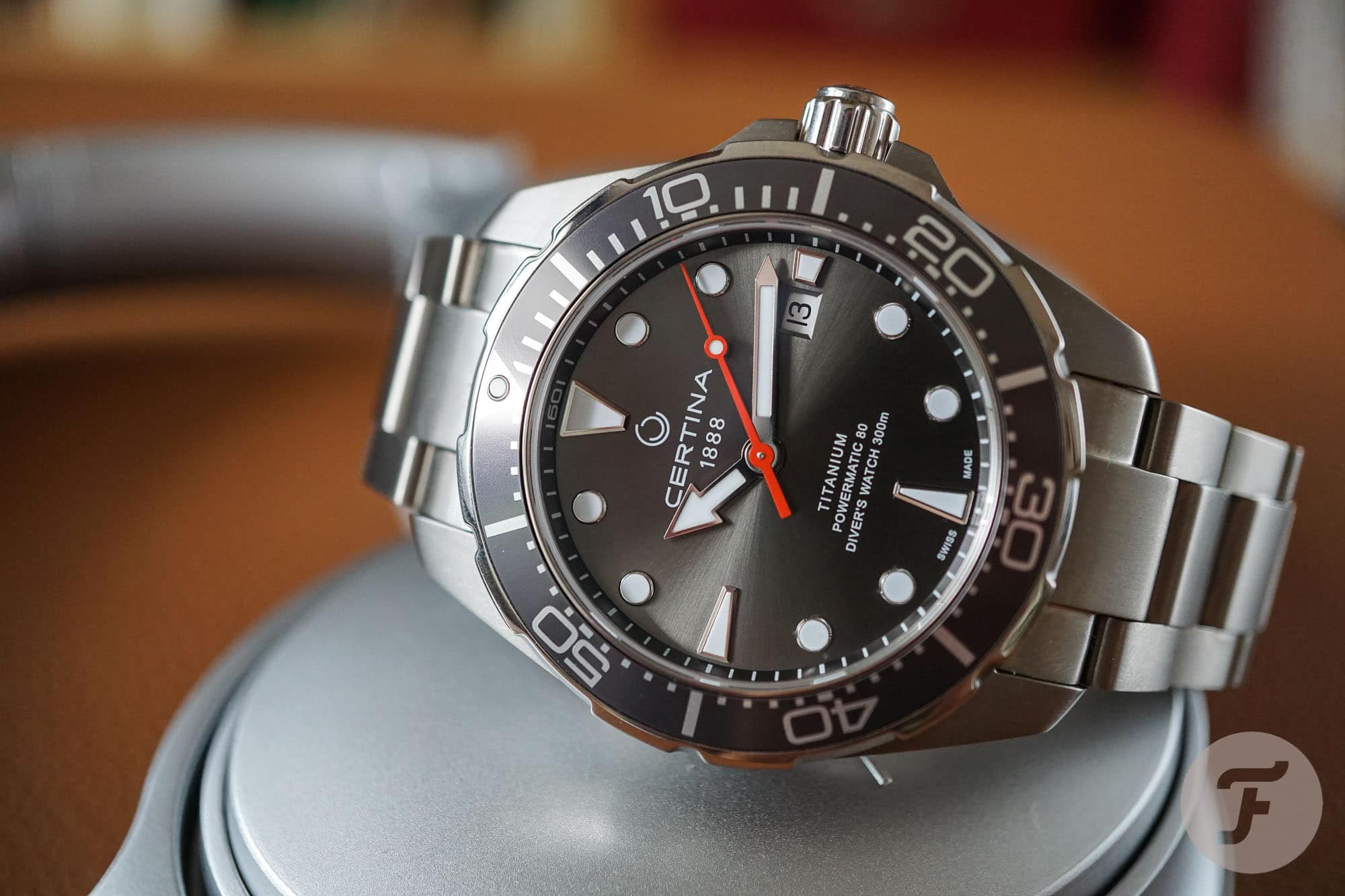 The only downside of titanium -some say- is that it picks up scratches, marks, and smudges reasonably quickly. Or so you’d think. Wipe the watch with the polishing cloth, and it will look as good as new. I’m talking about surface marks. The DS Action Diver Titanium meets the ISO 6425 standard which clearly states what is considered to be a dive watch. The DS (“Double Security”) system that most Certina watches have is also built into the case of this diver too. Lastly, let’s talk about the price. The Certina DS Action Diver Titanium is going to cost you €975 (830 GBP or $1090) which is still below the magical €1k mark. To me this qualifies as affordable, especially if you think about what you get for this money; Swiss made, mechanical watch with 300 meters water resistance, 80 hours of power reserve in titanium.