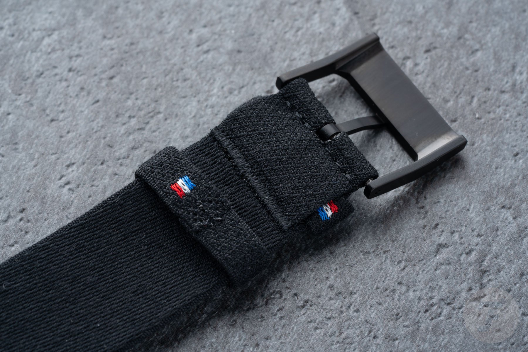 The first strap is black and green with a black PVD-treated steel buckle, while the second is all black with a black titanium buckle. Additionally, the keepers of this strap feature small French flags, and the long end features green stitching. I love the little attention to detail, and both straps feel very nicely made, as we have come to expect from Julien Faure straps.
