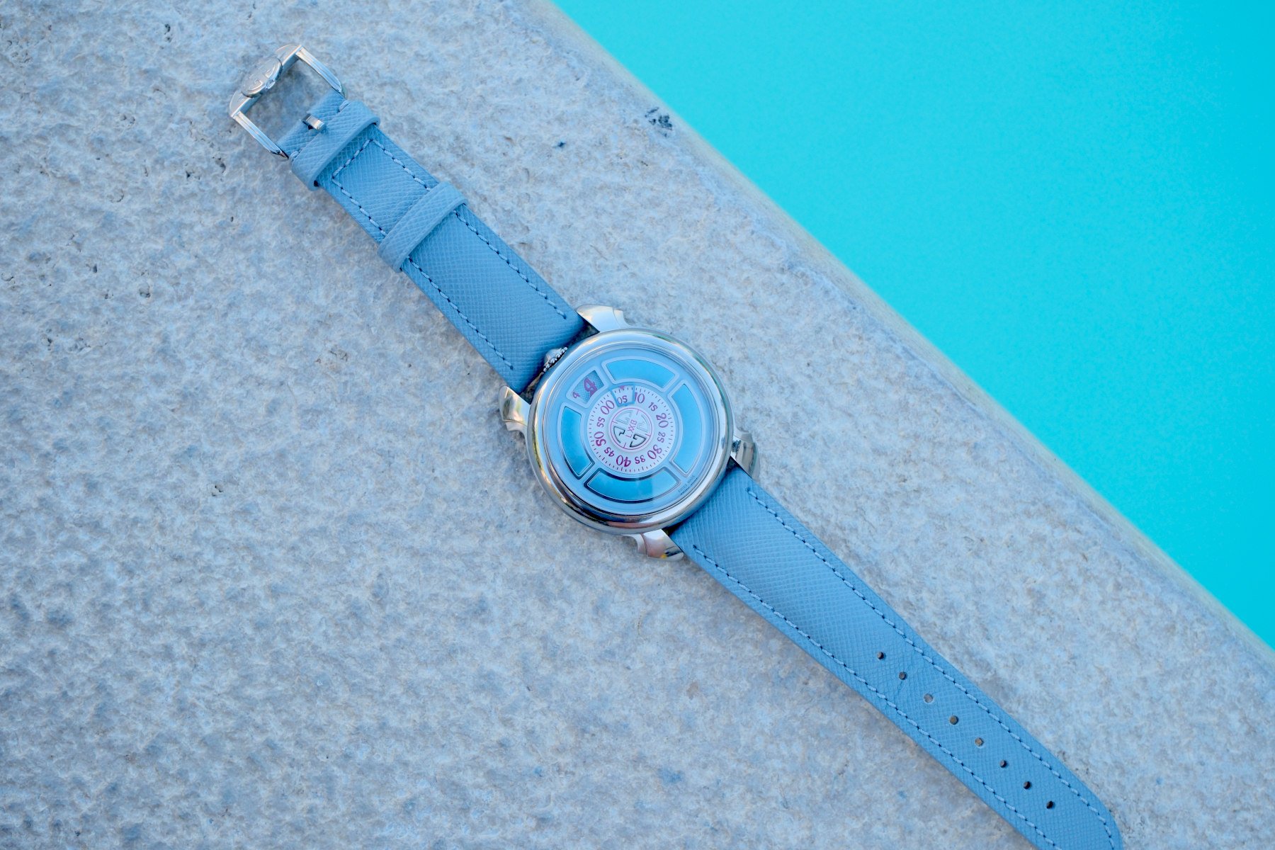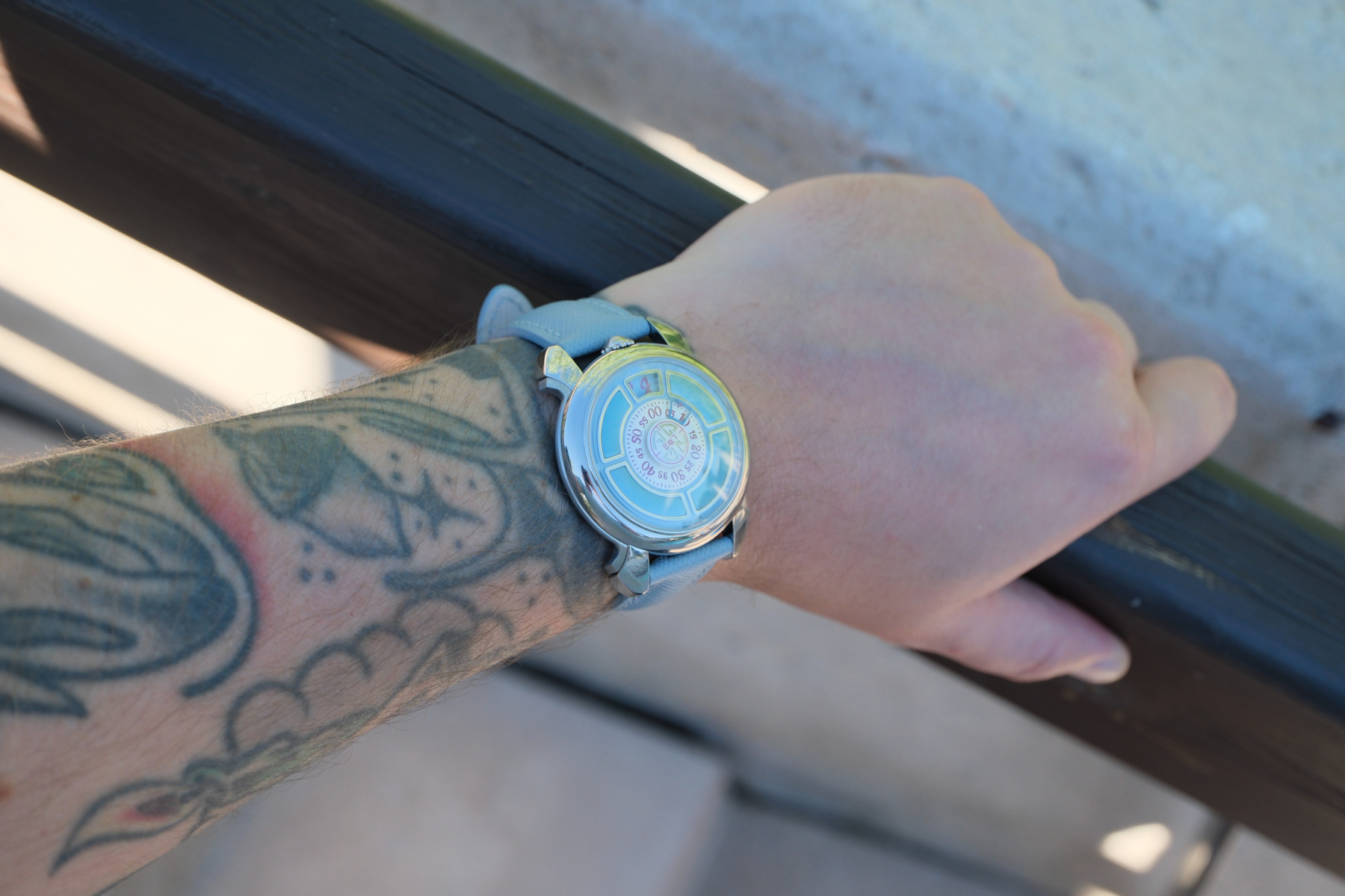 I took the Gagà Laboratorio Labormatic Azzurro with me on a recent holiday to Rhodes to see how it would fare in a real-world setting. It’s not the kind of watch I usually reach for, as its design is bolder and more stylized than my day-to-day choices, but that was part of the appeal. I was curious to see how I’d fare with it over a whole week, wearing it in a different environment and letting it settle naturally into my routine.