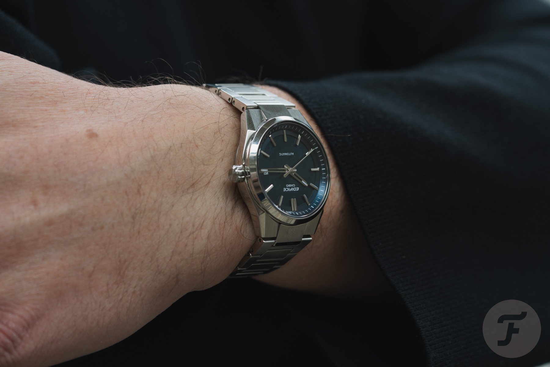 As usual, let’s kick things off with the specs of the new watches. The stainless steel EFK-110 measures 38mm in diameter, 11.8mm thick, and 43mm from lug to lug. That means it’s 1mm smaller and a substantial 0.7mm thinner than the EFK-100.