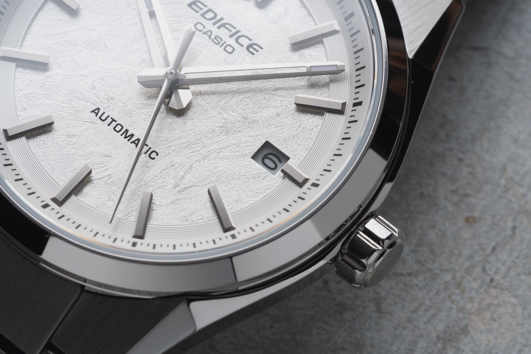 Casio offers three dial variants for the EFK-110 series. The dials all have the same electroformed base with applied silver-tone metal indexes as their predecessors. But the white-dial version has a more pronounced texture than the previous one. The black and blue variants are in line with their EFK-100 counterparts.