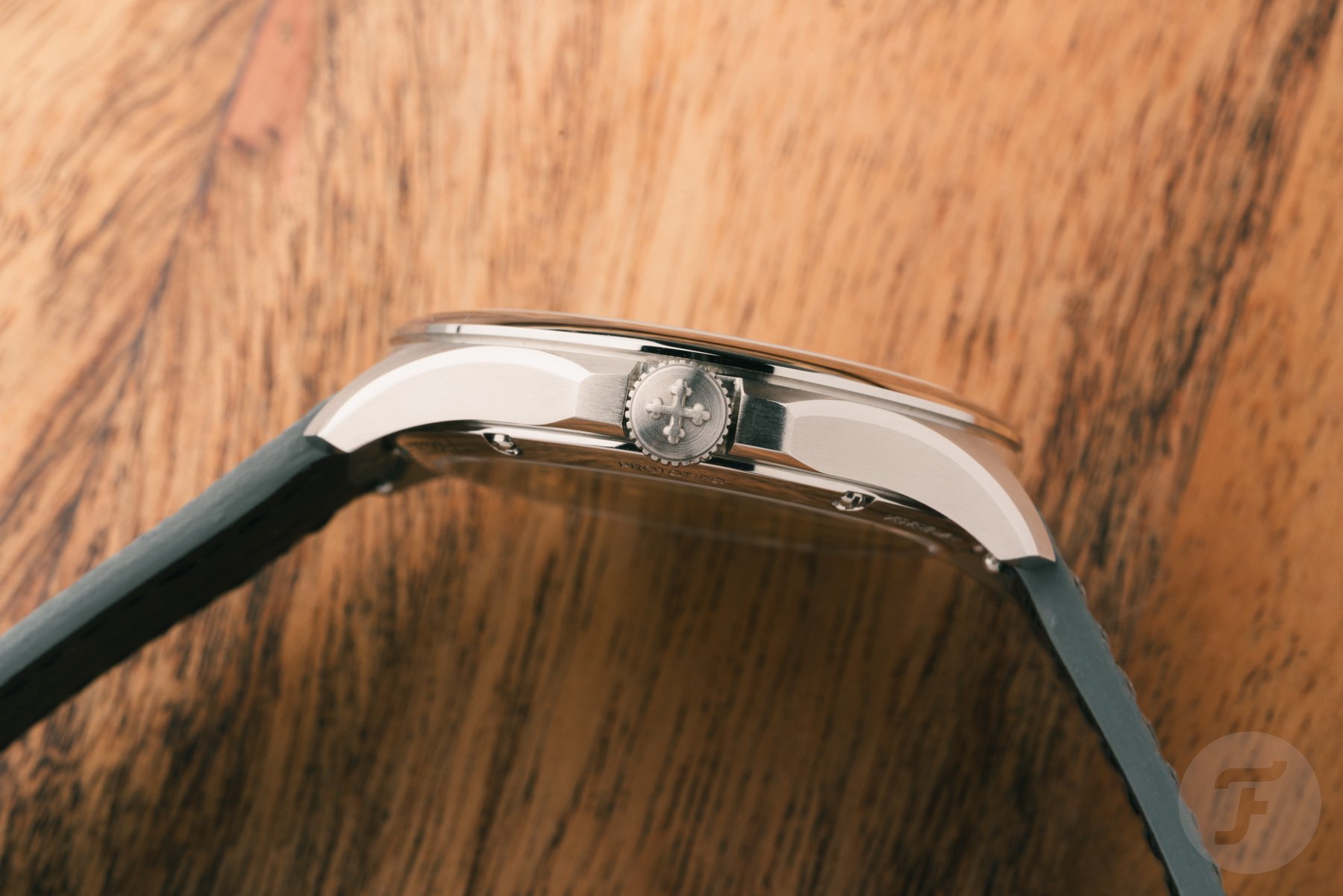 The case has an organic, flowing overall form with a few angular lines to add modernity. A mix of brushed and polished surfaces provides plenty of visual contrast when the watch is on the wrist. Additionally, the contemporary case has beautiful proportions, making it the perfect canvas for a modern dress watch.