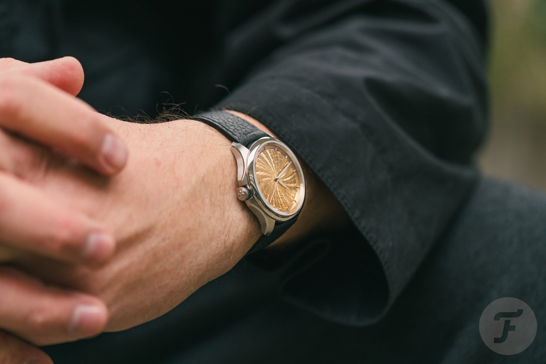 Because of this, the Beta model is the one I would wear more often with my daily outfits. But, my goodness, that gold-colored dial pops! Also, the Redentore Utopia II models are super comfortable on the wrist. The 38mm size is perfect for a modern dress watch, and the spot-on proportions were ideal for my wrist. When taking the watch off to wind the caliber or set the time, I could feel the quality of the new caliber inside. It really is in a different league compared to the standard Redentore models.