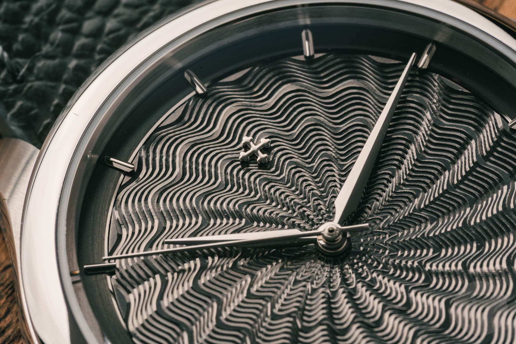 Both dials feature a handcrafted Marea pattern developed specifically for these two watches. The motif reflects the waves of the Venetian lagoon and their constant movement and transformation. It’s amazing to think that every line you see here was sculpted by hand following a slow, controlled rhythm. The precision and craft that go into making these dials is wonderful, and it shows. The only added detail on the dials is the brand’s applied cross logo.