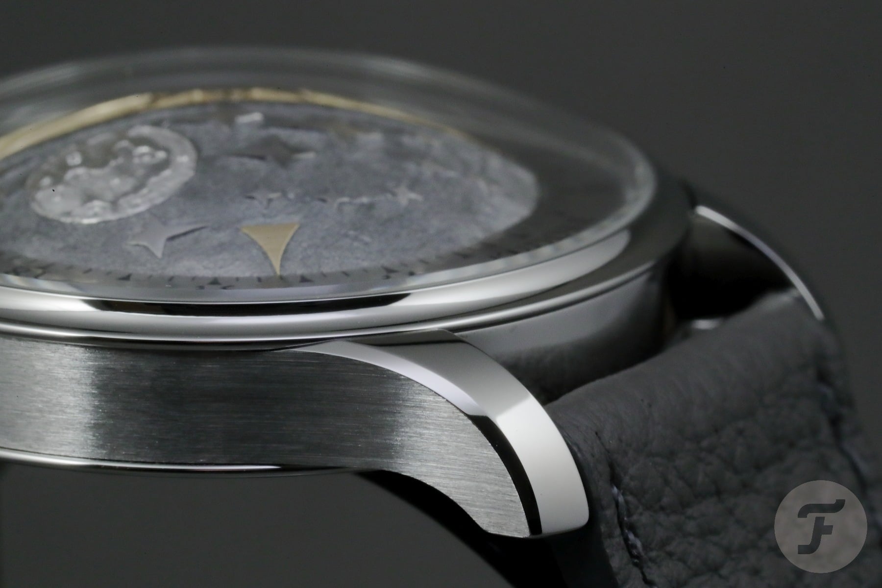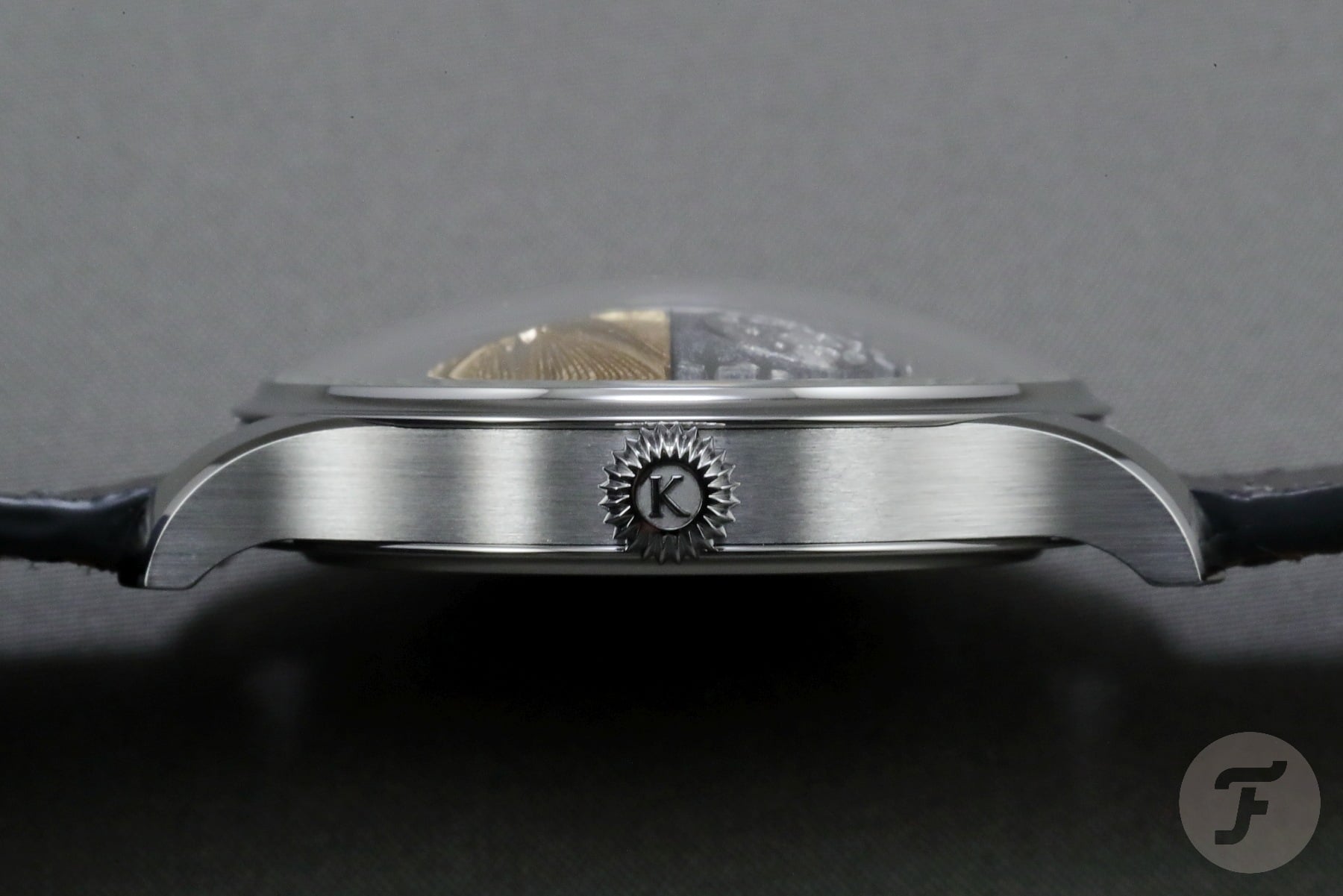 Taking a closer look at the case reveals the manual finishing the Kudoke team applied. The sharp edge between the brushed side and the mirror-polished chamfer along the lug is exemplary, and the polished top of the lugs and the finishing of the concave bezel are flawless. Pleasingly, the round rims of the bezel and case back extend a smidgen beyond the case’s sides, enhancing the shape of the case flanks. The top of the lugs follows this tiny detail of the bezel. While the case of the K5 may appear simple, it most definitely is not.