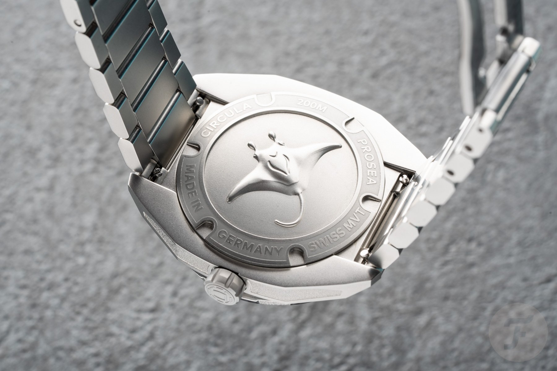 While ProSea’s dial may not show a manta ray, the case back does. It’s beautifully embossed and smoothed for comfort on the wrist. The case back, like the rest of the case, is also hardened. So is the screw-down crown, which bears the “C” from the Circula logo.