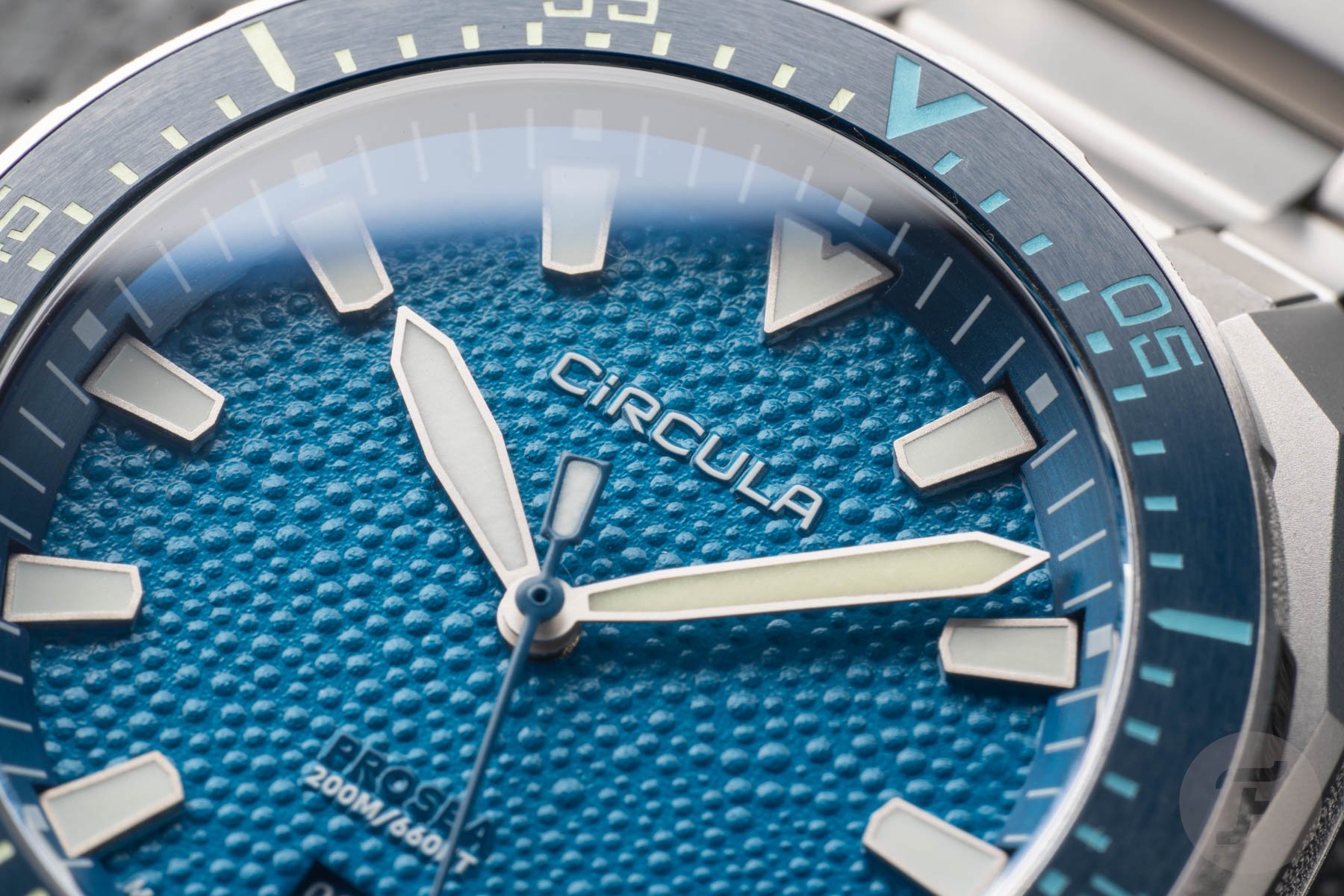 As I wore the Circula ProSea for a week, it became a friendly and reliable companion. I was often impressed by the good readability under virtually all conditions; thank you, Guy. The one I was able to test was the version with a blue dial and bezel. I’m not sure if that one or the one with the petrol dial and black bezel would be my favorite. The all-black version is probably the safest, but it wouldn’t be my choice because to me it’s too generic. Except for readability, the dial, with its many little bubbles, is the absolute star of the show. I don’t think anyone, without knowing, would immediately see a manta ray’s skin here, but the structure of it is almost mesmerizing. I can imagine that Circula chose “manta ray” for this ProSea’s dial variation since “little bubbles” might not be as appealing.
