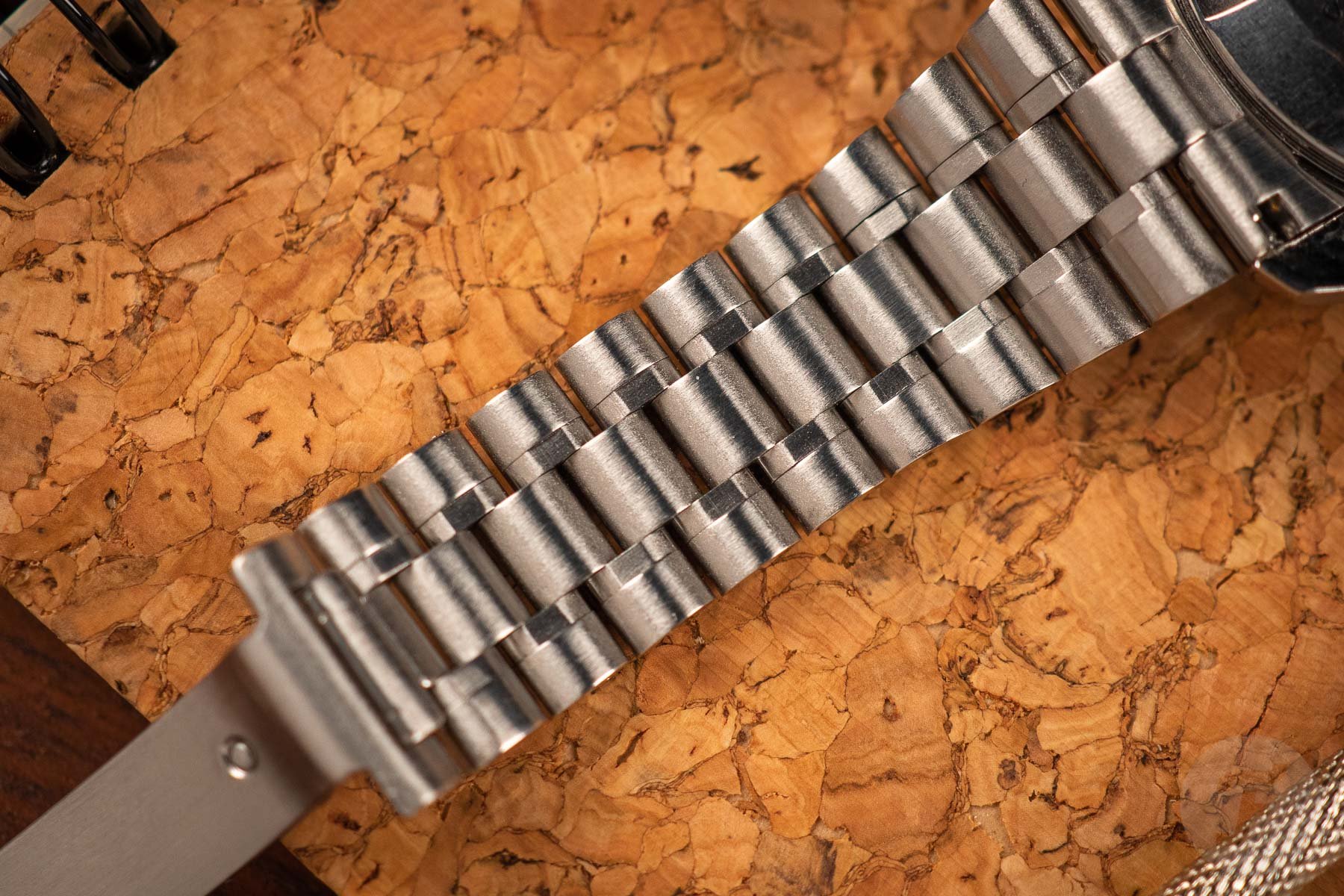 The finishing on the bracelet is pleasant, and though it doesn’t exactly measure up to the high quality of the latest Swiss offering from Omega, it’s definitely far better than any other aftermarket offering I’ve experienced. On the outside, brushed and polished elements live side by side. Flip the bracelet over, however, and all five links are satin-brushed. The “JB” logo on the clasp is deeply engraved, yet its edges are smooth. In general, you’ll find no overly sharp edges on the bracelet. Is it a bit of a hair-puller? Not overly so. But as with any bracelet with small links, you’ll experience a pinch from time to time. One final thing to note is that the end links don’t have “wings” and feature just a thin lip on the underside to ensure stability against the case without marking up the back of your lugs.