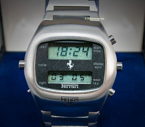 LED-Forever, a website dedicated to these type of watches, has put up one of the rarest versions of them all, the Heuer Chronosplit Ferrari Edition (r102.703-3) as sold in 1978. Famous drivers like Niki Lauda, Clay Regazzoni (read my ME article on this guy by clicking here) and Gilles Villeneuve wore this watch during their racing career. Only 200 of these have been produced by Heuer, and the seller claims that only 10% is still around. The Buy Now option is enabled for no less than $9,500 USD. You must be a true collector or LCD aficionado to click that button.