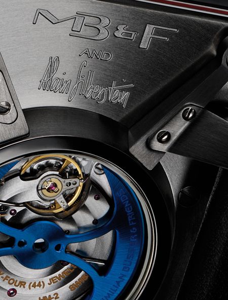 The side of the case has an inscription that has the following sentence: Le vrai bonheur est davoir sa passion pour mtier? (True happiness is having one’s passion for a profession?). To quote the press release: That is Alain Silberstein’s motto, and he found his soul mates in MB&F. He says that the whole point was the pleasure of working together, and Maximilian Busser agrees. Alain is a true artist, but he never takes himself too seriously. He has kept that childlike spirit of adventure, and that is something that we at MB&F hold dear.”