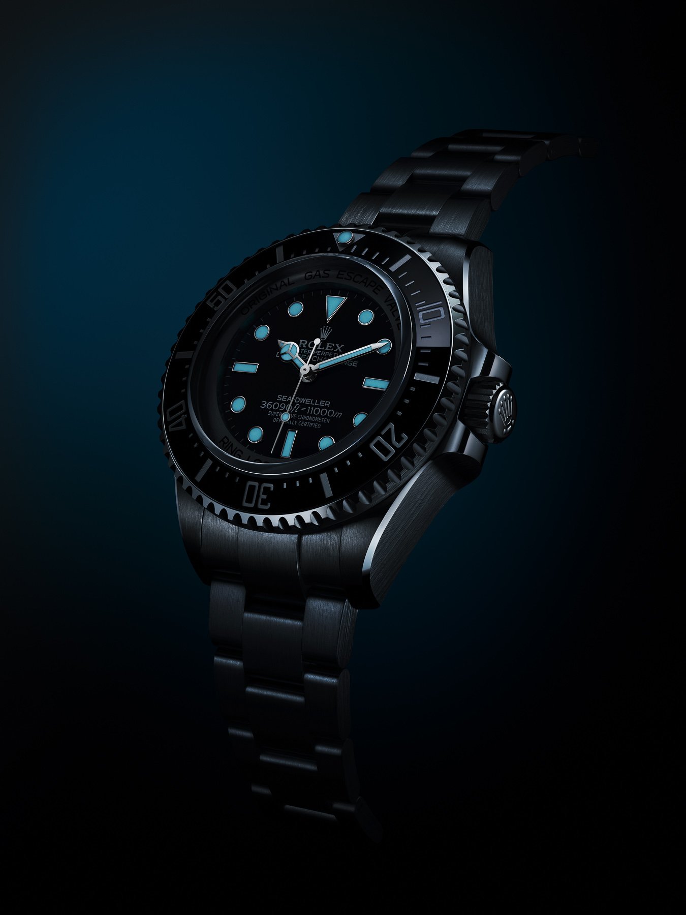 In 2012, the prototype watch was fixed to the manipulator arm of James Cameron’s submersible. However, this new commercialized version of the prototype is — according to Rolex — made more wearable than the one used to descend into the Mariana Trench. Rolex ensured they used their divers watches’ expertise to develop this Sea-Dweller Deepsea Challenge. There’s the helium escape valve featured in all Sea-Dweller references, the Triplock crown, Chromalight luminous material, and, of course, the Ringlock system that ensures the watch deals with the enormous amounts of pressure under water.