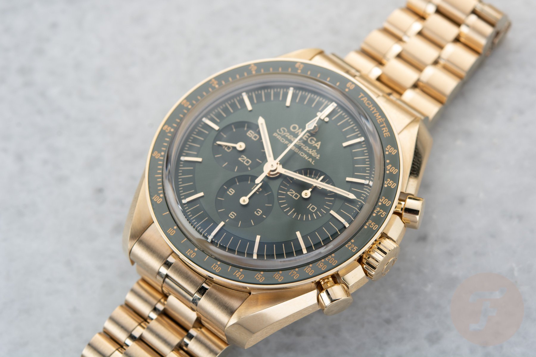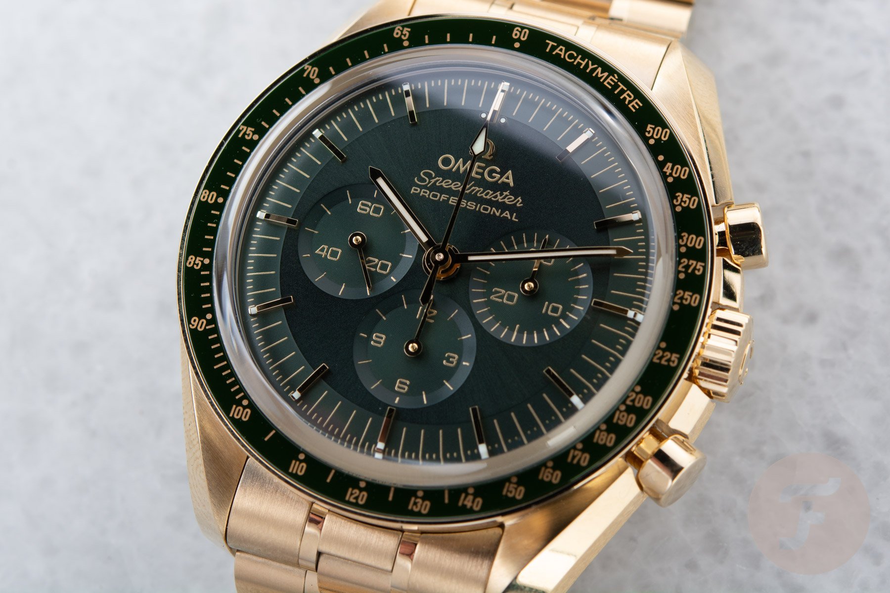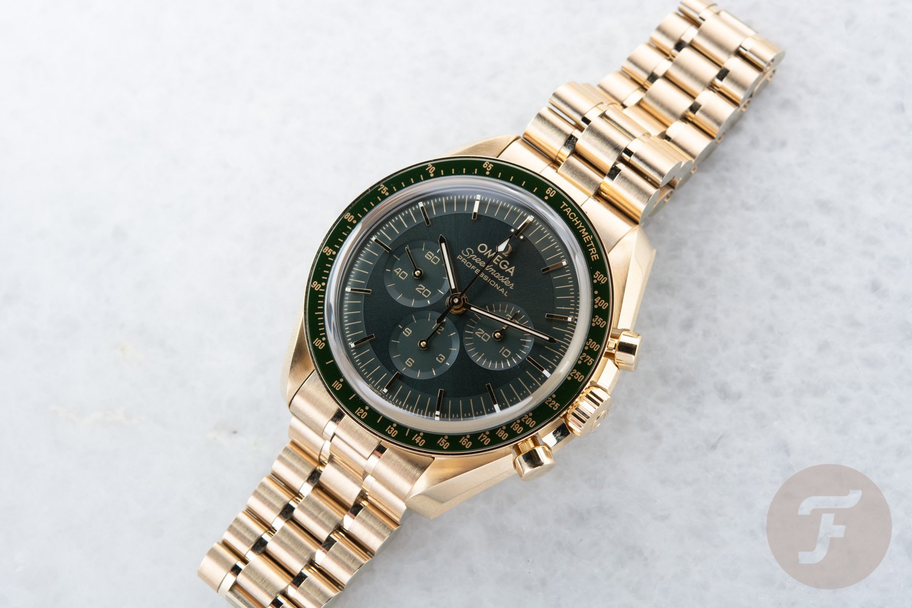 The Omega Speedmaster Professional Moonshine Gold in Green