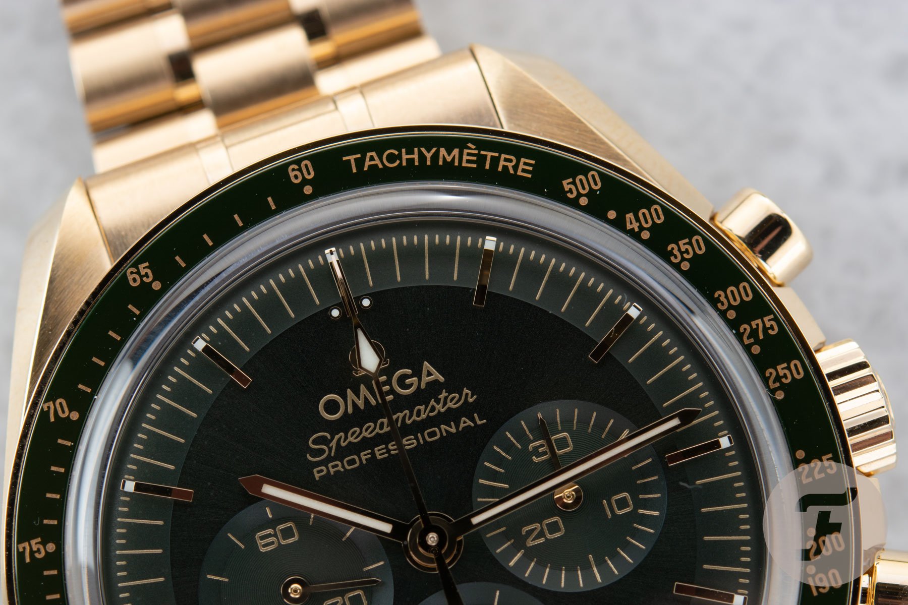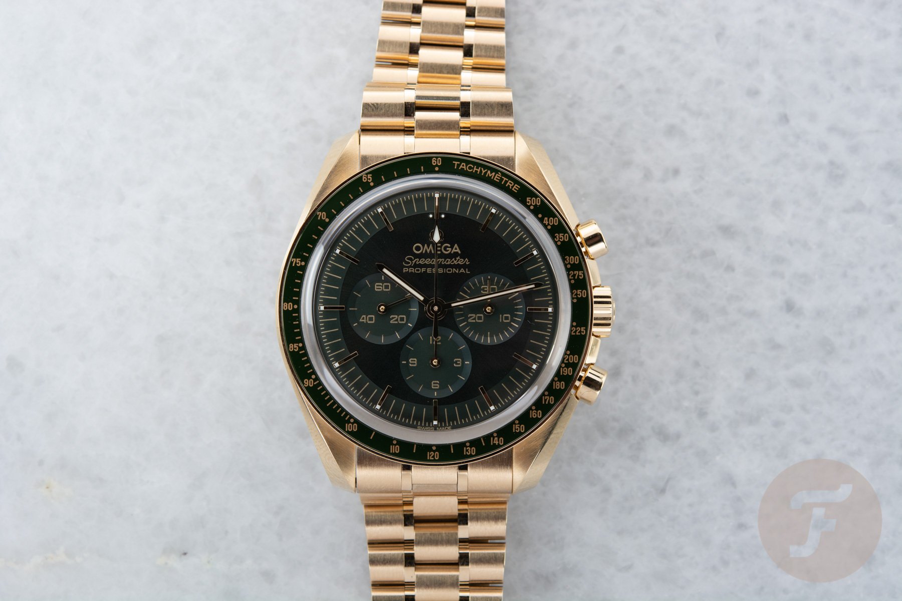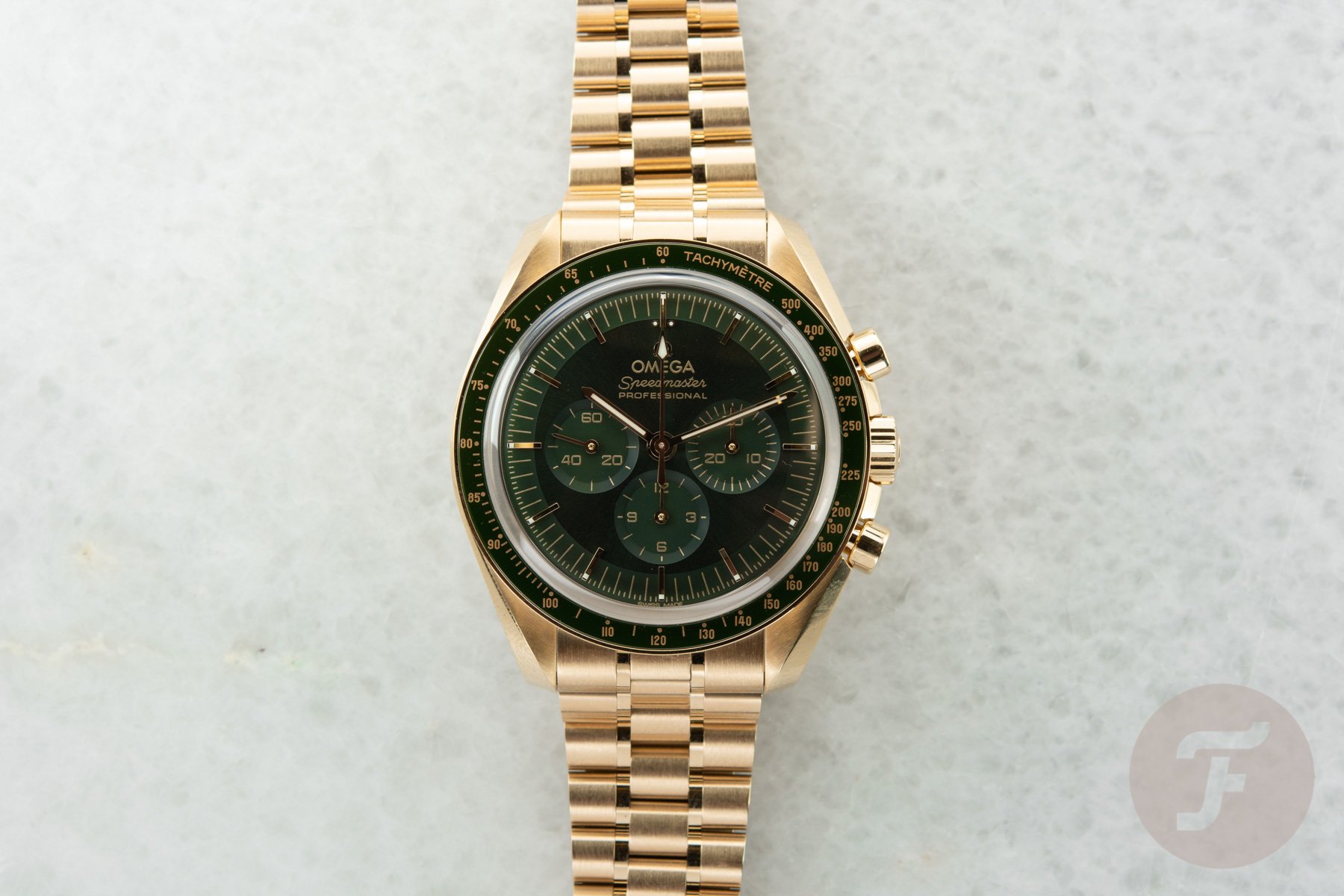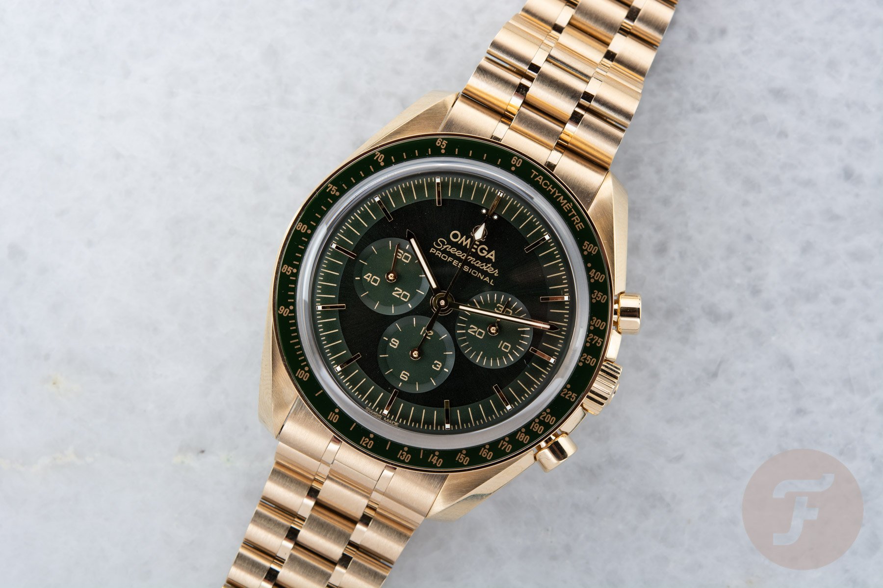 The Omega Speedmaster Professional Moonshine Gold in Green